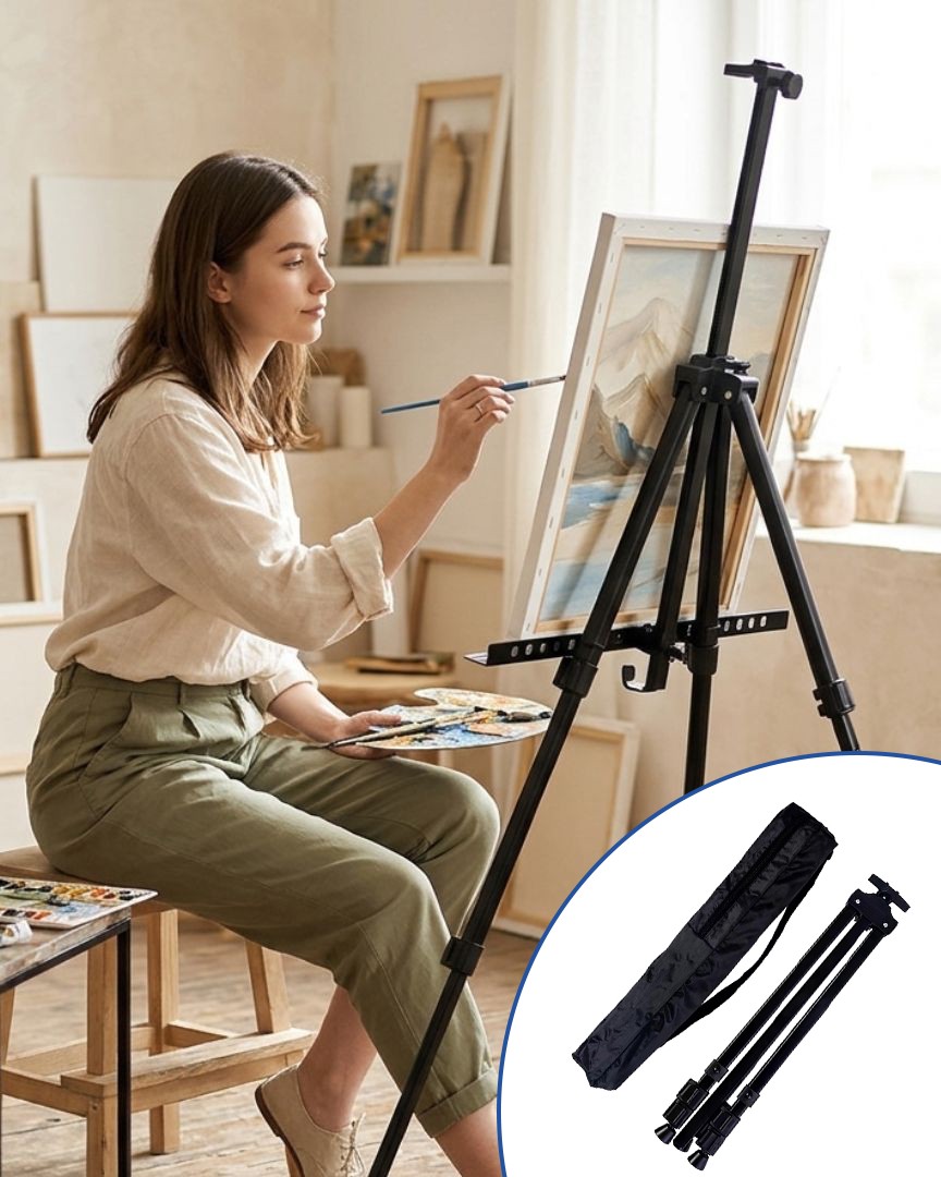 Регулируемый портативный мольберт M01 - легкий и компактный инструмент, позволяющий располагать полотно будущей картины в любом удобном для комфортного рисования положении. Комплектуется чехлом с ручкой, благодаря чему мольберт легко переносить и идеально подходит для рисования как дома, так и на открытом воздухе. Он станет незаменимым помощником для художников, которые ценят мобильность и удобство, позволяя творить шедевры где угодно.