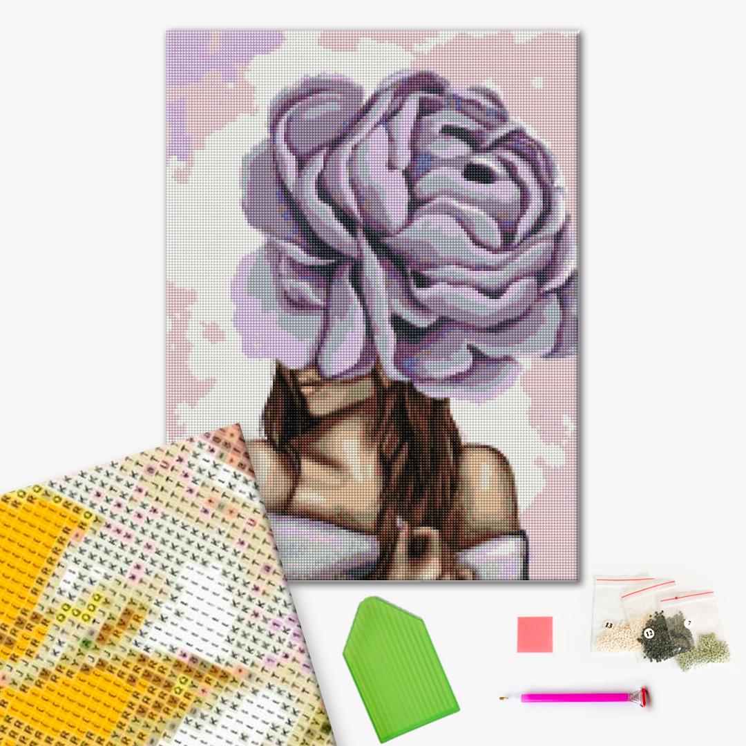 Алмазная мозаика Дама з фіолетовим піоном