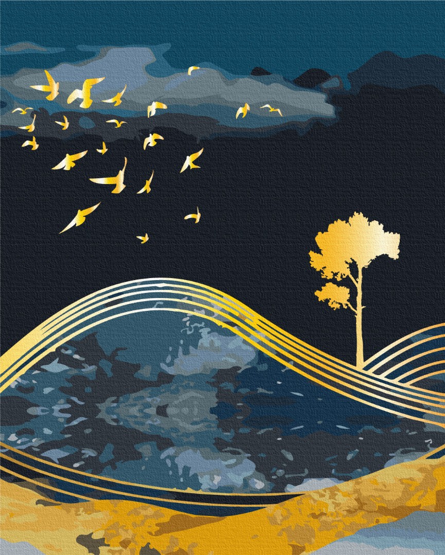 Картина по номерам Птицы ночи с золотой краской BS53042