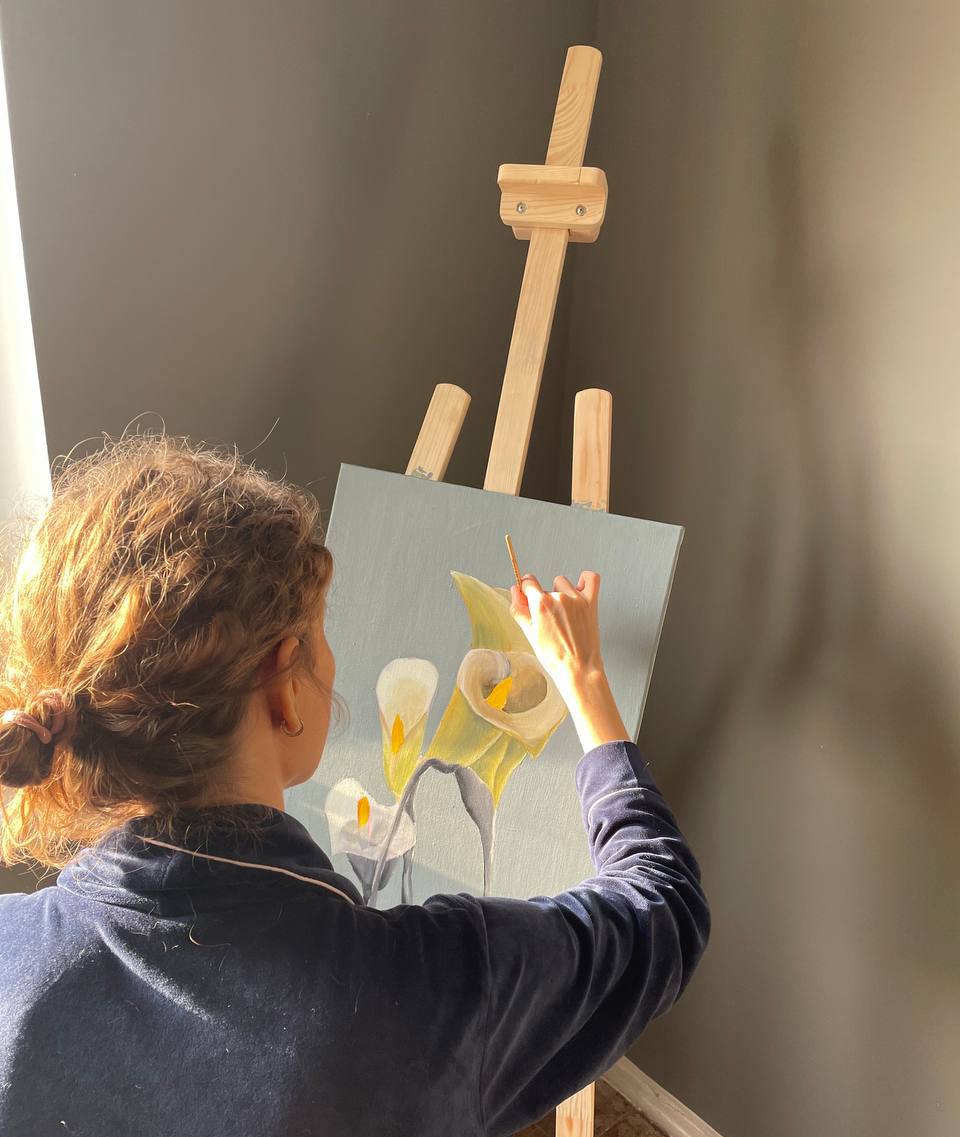 «Зараз у мене період пошуку, хочеться чогось нового, але поки не нащупала, що саме це буде. Працюю переважно олійними фарбами, а у деяких серіях своїх робіт використовувала мішану техніку, додавала вишивку до полотен. Це був дуже цікавий досвід».