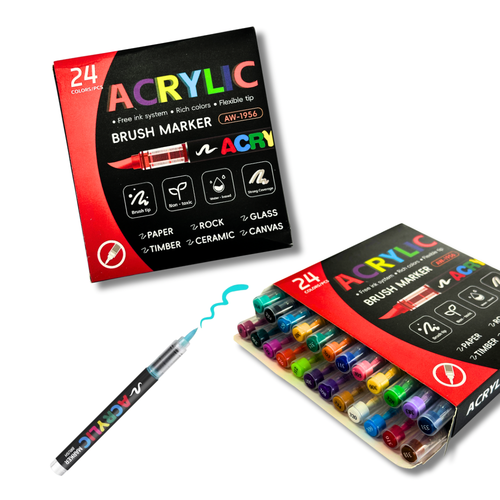Акрилові маркери на водній основі — це ідеальний інструмент для втілення найяскравіших ідей. Вони легко та рівномірно лягають на поверхню, чудово передають колір і швидко висихають, не розмазуючись.