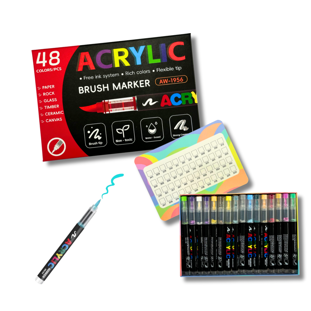 Акрилові маркери на водній основі — це ідеальний інструмент для втілення найяскравіших ідей. Вони легко та рівномірно лягають на поверхню, чудово передають колір і швидко висихають, не розмазуючись.