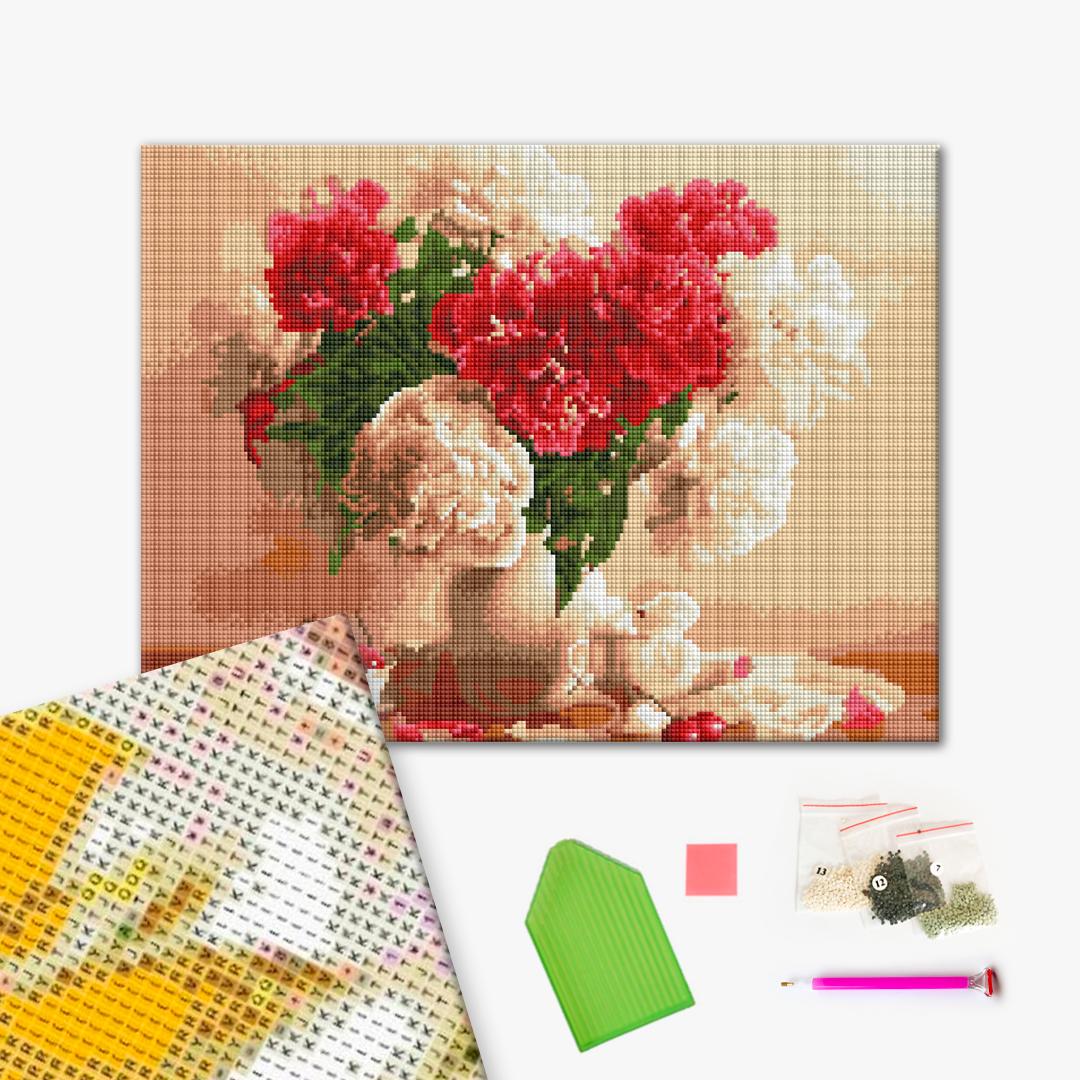 Алмазна мозаїка Червоно-білі піони і вишні DBS8082