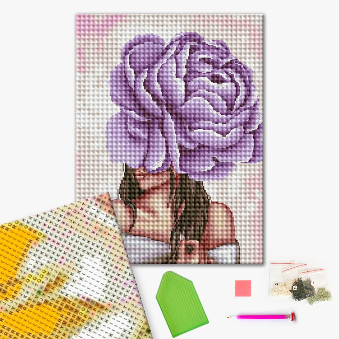 Алмазна мозаїка Дама з фіолетовим піоном DBS0012