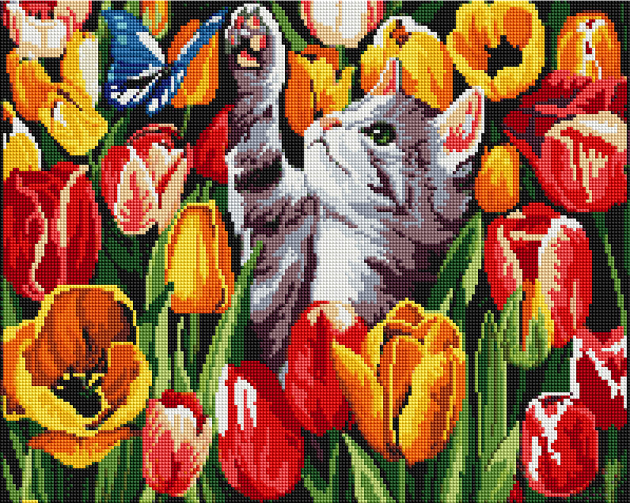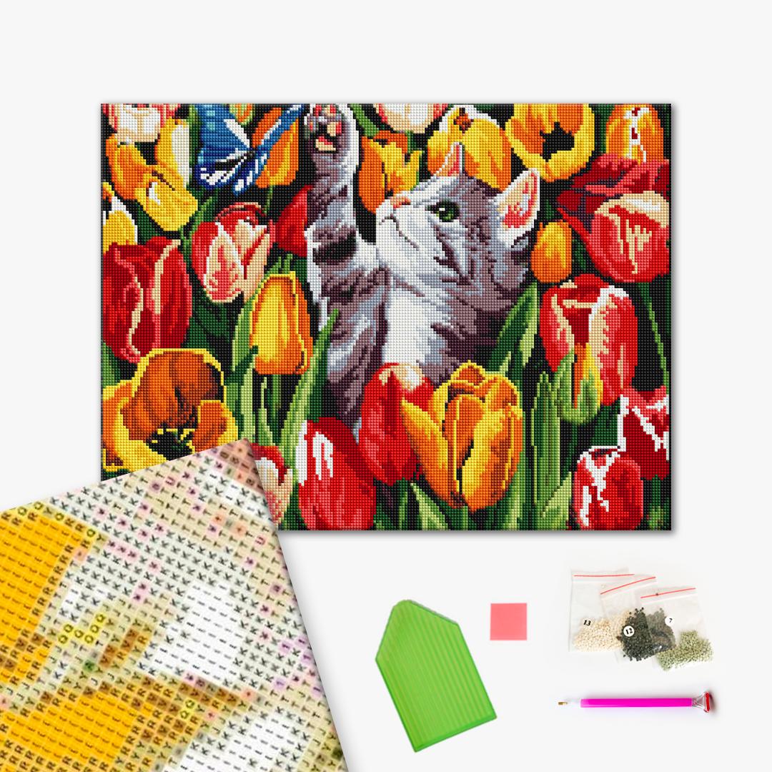 Алмазна мозаїка Котик в тюльпанах GF5457