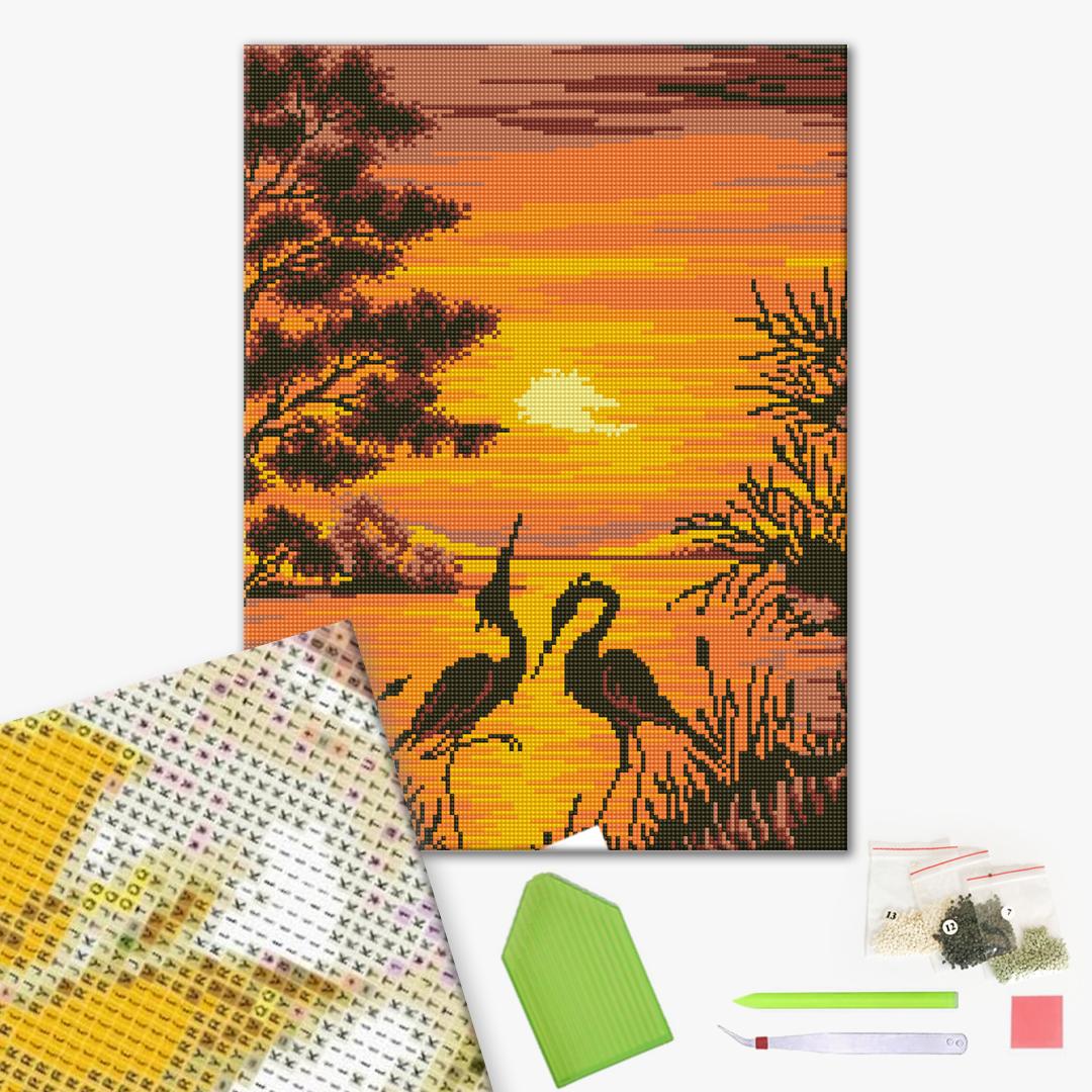 Алмазна мозаїка Журавли в лучах заката GZ194