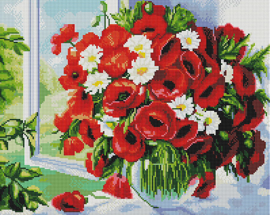 Алмазна мозаїка Букет з маків і ромашок GF4127