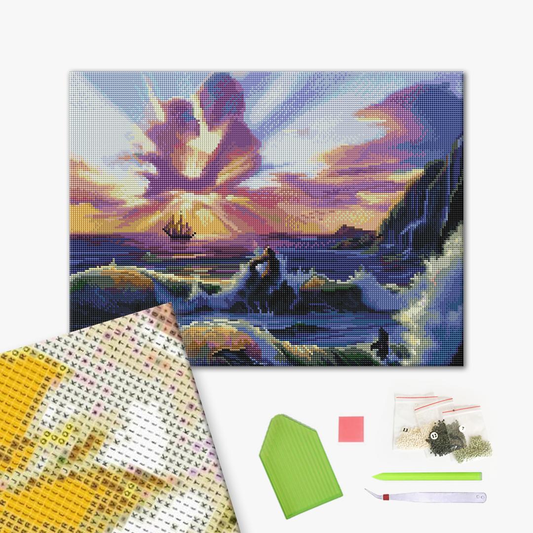 Викладіть картину з безлічі маленьких кольорових камінців. Заповнюючи, поступово, ряд за рядом, з під Ваших рук буде з'являтися чудове переливаються зображення. Кожен камінчик виконаний з міцного матеріалу, огранен по типу дорогоцінних каменів і при попаданні на межі сонячного або штучного світла, утворюється мерехтливе полотно.
