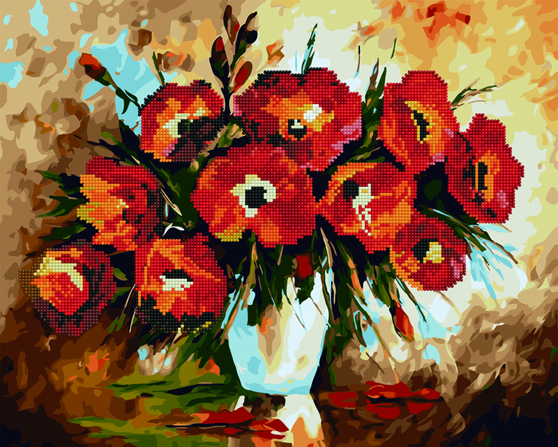 Алмазна мозаїка Маки в білій вазі GZS1107