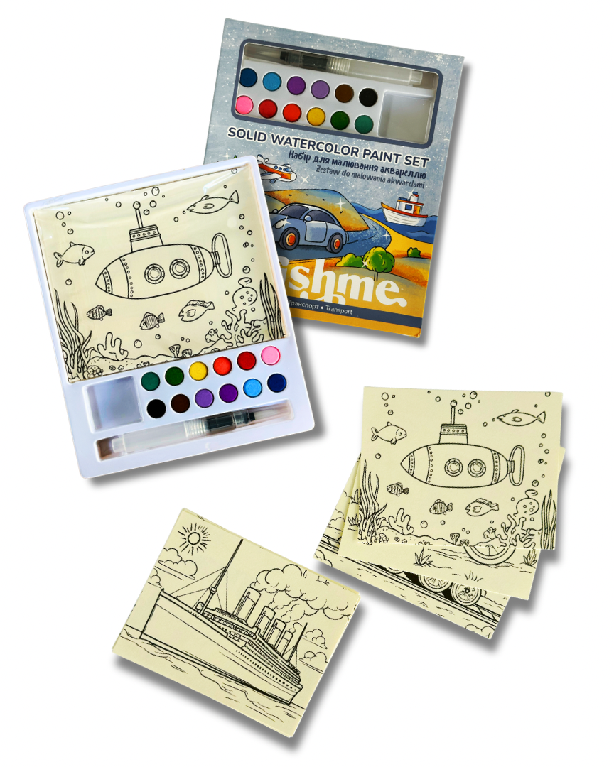 У цьому наборі все готове для вашої творчості, просто відкривайте та творіть де завгодно. Він дуже зручний, адже вам не потрібно додатково склянки для води, адже у сам пензлик можна залити водичку.