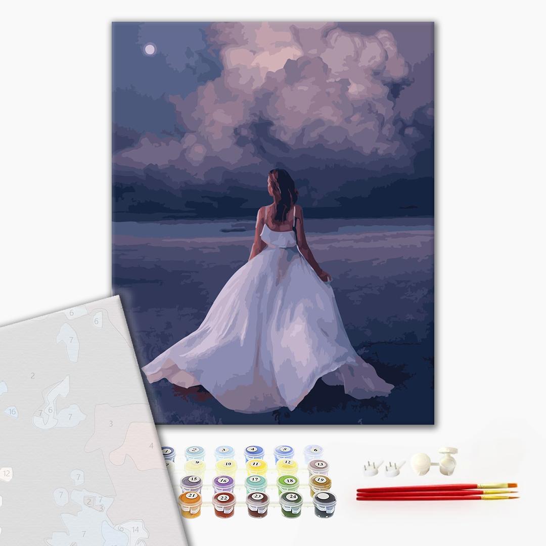 • полотно на дерев'яному підрамнику з нанесеною пронумерованою схемою майбутньої картини. Всі сегменти додатково пофарбовані в тон кольорів, якими буде зафарбовувати полотно