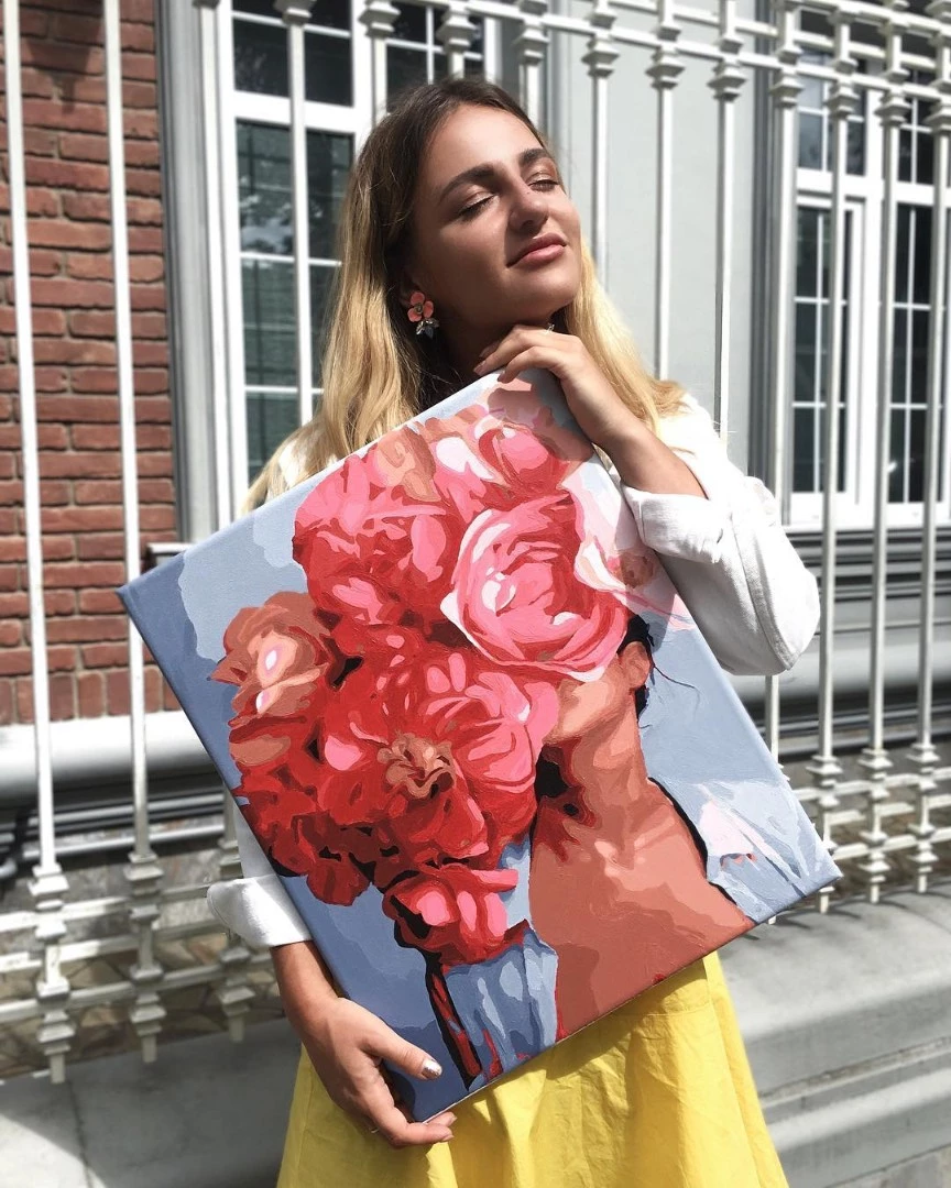 • бавовняне полотно на дерев'яному підрамнику з нанесеною пронумерованою схемою майбутньої картини