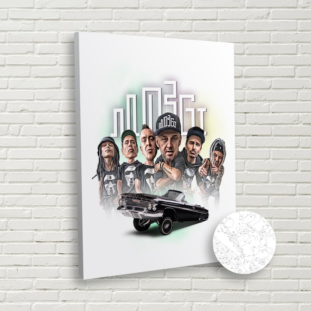 • полотно з льону на дерев'яному підрамнику з нанесеною пронумерованій схемою майбутньої картини. Всі сегменти додатково пофарбовані в тон фарб, якими буде зафарбовувати полотно.