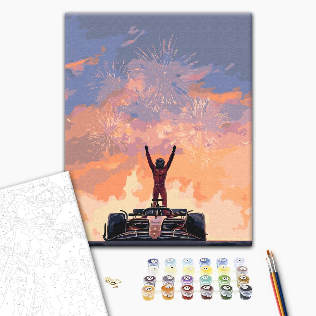 Ви самі створюєте атмосферу великих перегонів: яскраві боліди на стрімких трасах, а енергія перемоги відчувається в кожному мазку пензля.