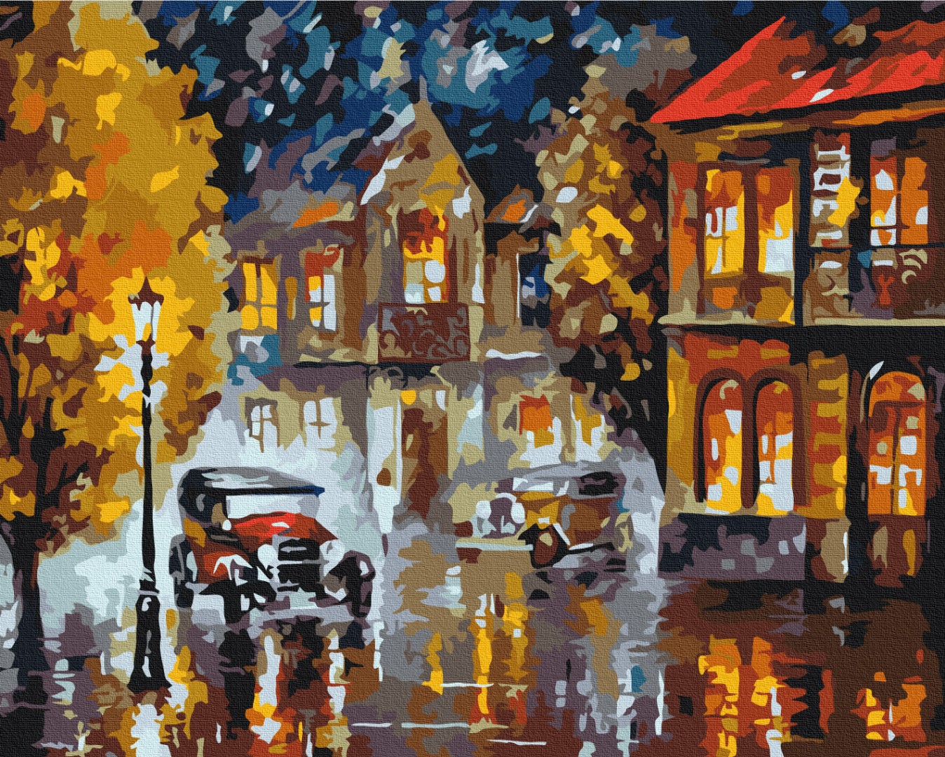 • полотно на дерев'яному підрамнику з нанесеною пронумерованою схемою майбутньої картини. Всі сегменти додатково пофарбовані в тон кольорів, якими буде зафарбовувати полотно