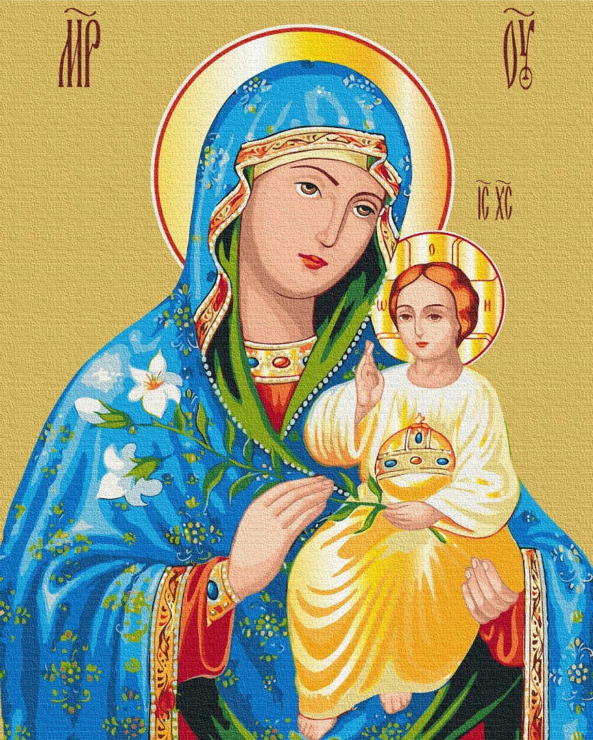 • полотно на дерев'яному підрамнику з нанесеною пронумерованою схемою майбутньої картини. Всі сегменти додатково пофарбовані в тон кольорів, якими буде зафарбовувати полотно