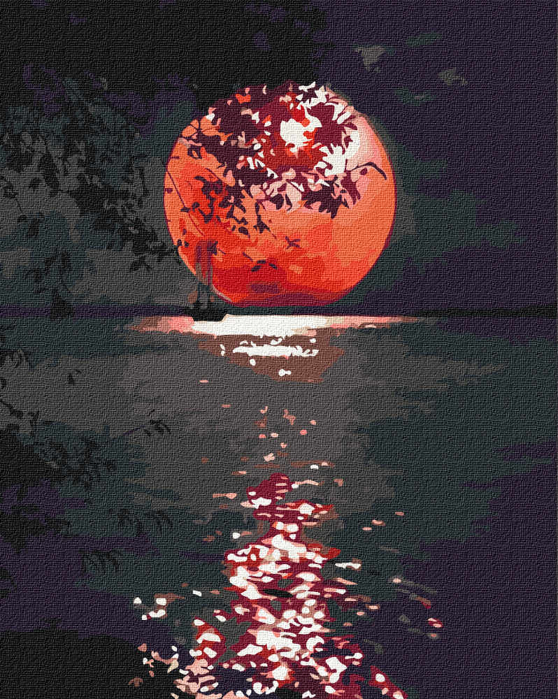 • полотно на дерев'яному підрамнику з нанесеною пронумерованою схемою майбутньої картини. Всі сегменти додатково пофарбовані в тон кольорів, якими буде зафарбовувати полотно