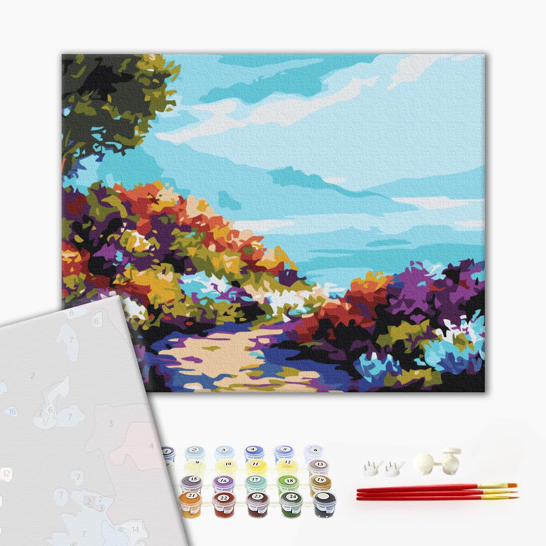 • полотно на дерев'яному підрамнику з нанесеною пронумерованою схемою майбутньої картини. Всі сегменти додатково пофарбовані в тон кольорів, якими буде зафарбовувати полотно