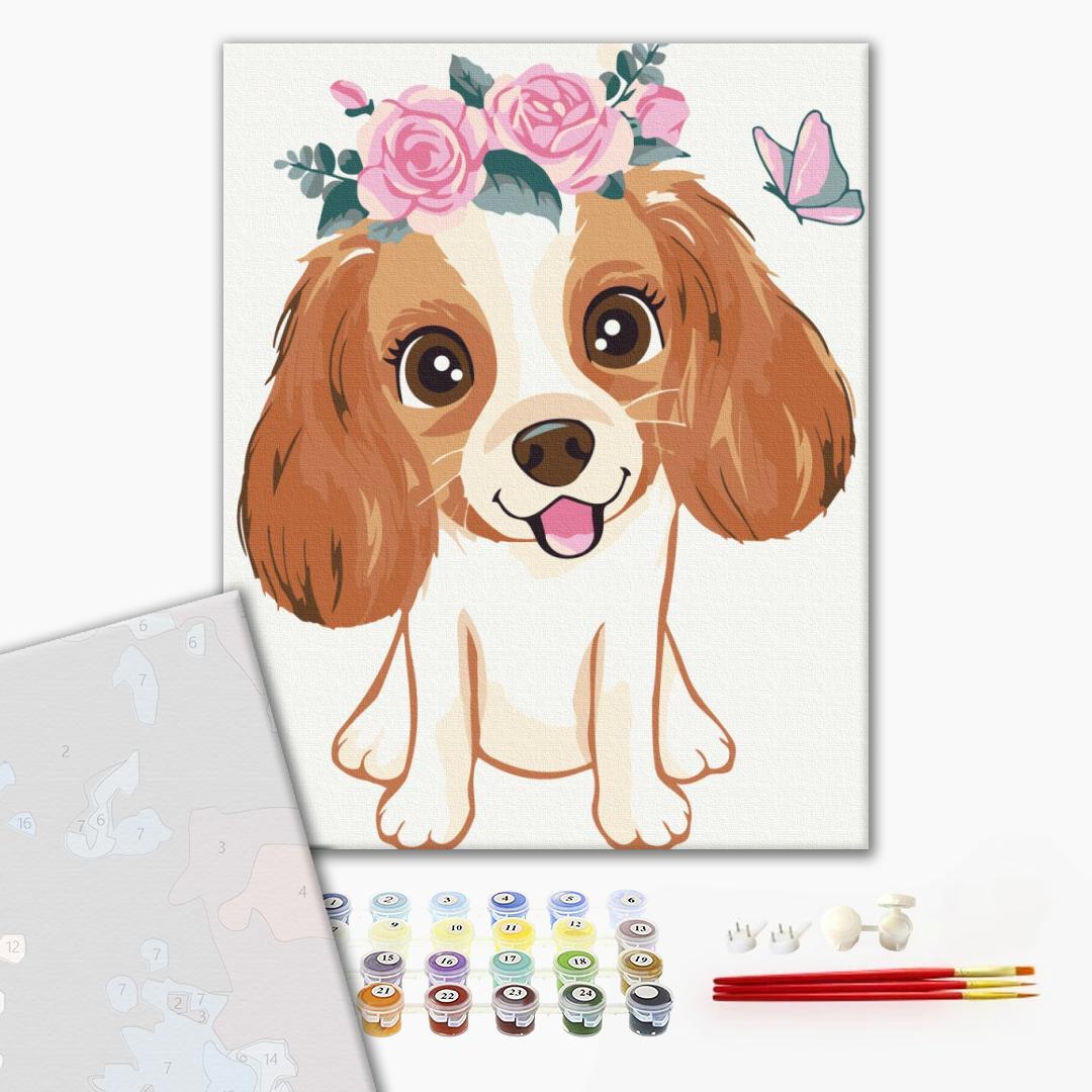 Преміум картина за номерами Песик в віночку PKBS7115