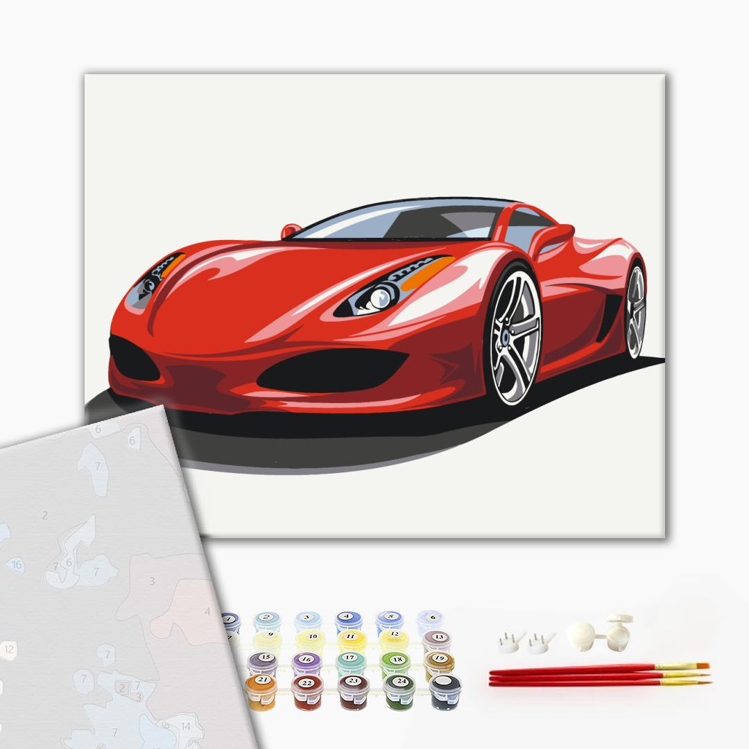 • полотно на дерев'яному підрамнику з нанесеною пронумерованою схемою майбутньої картини. Всі сегменти додатково пофарбовані в тон кольорів, якими буде зафарбовувати полотно