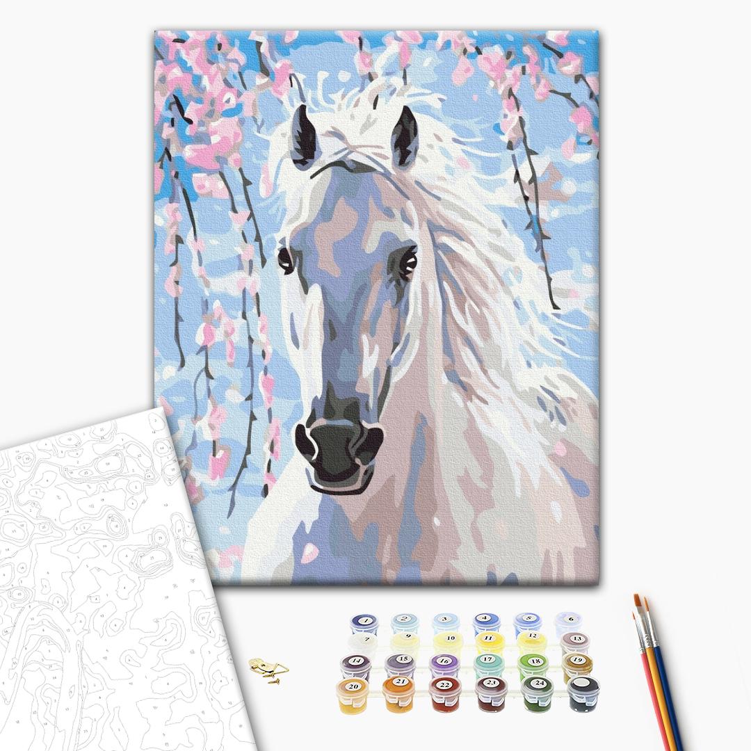 Преміум картина за номерами Кінь в квітах сакури PRBS8528