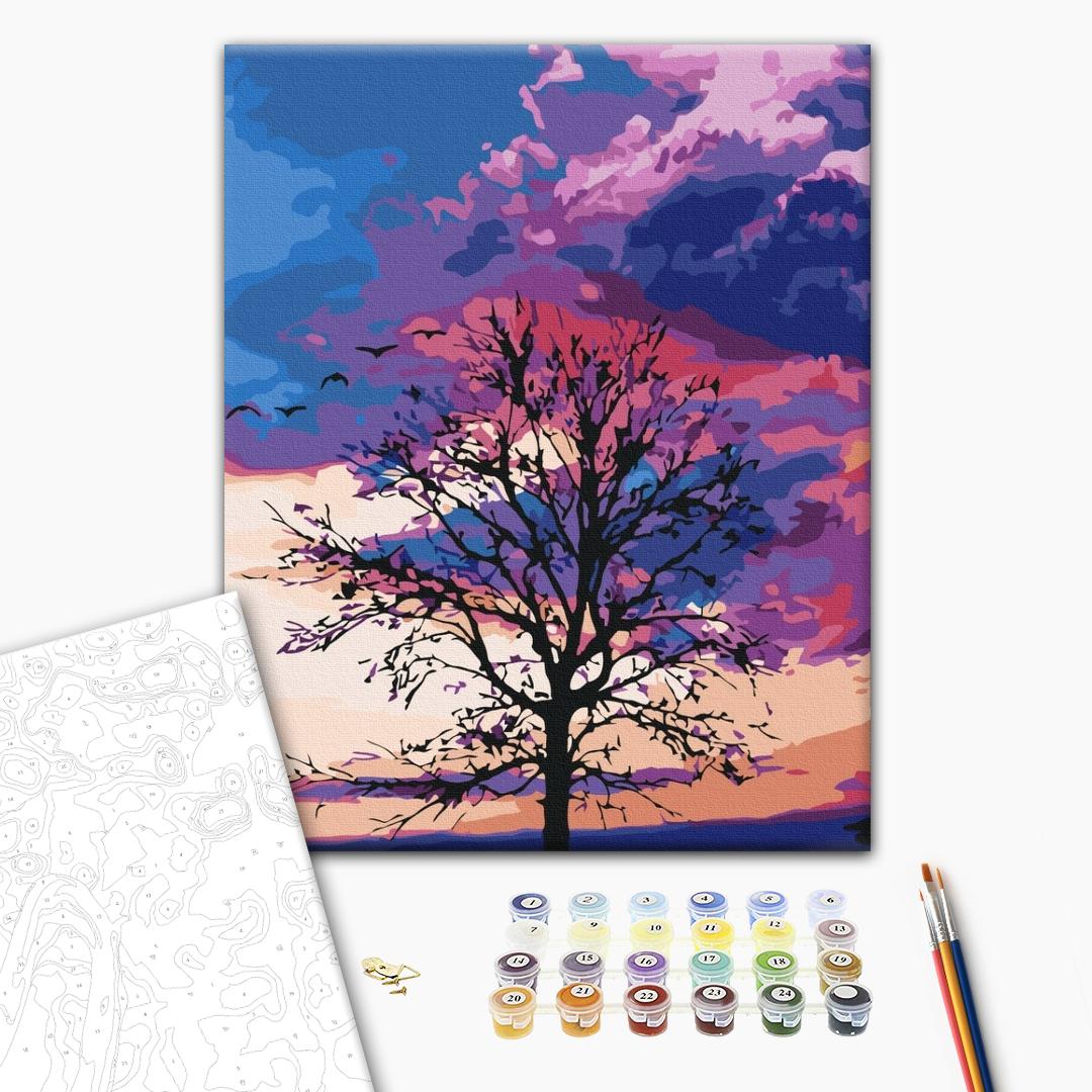 Преміум картина за номерами Осінь на фоні пурпурного неба PRBS52275
