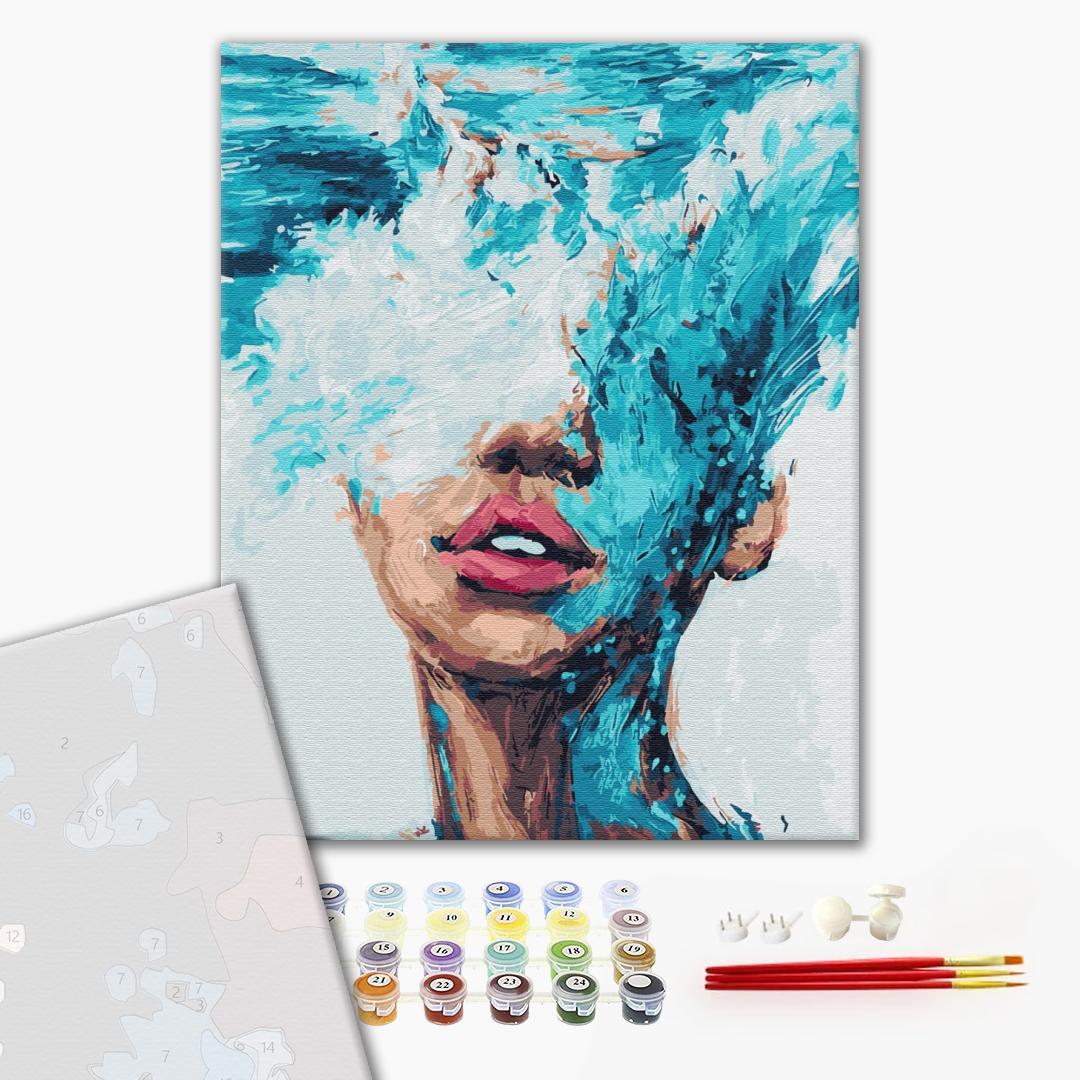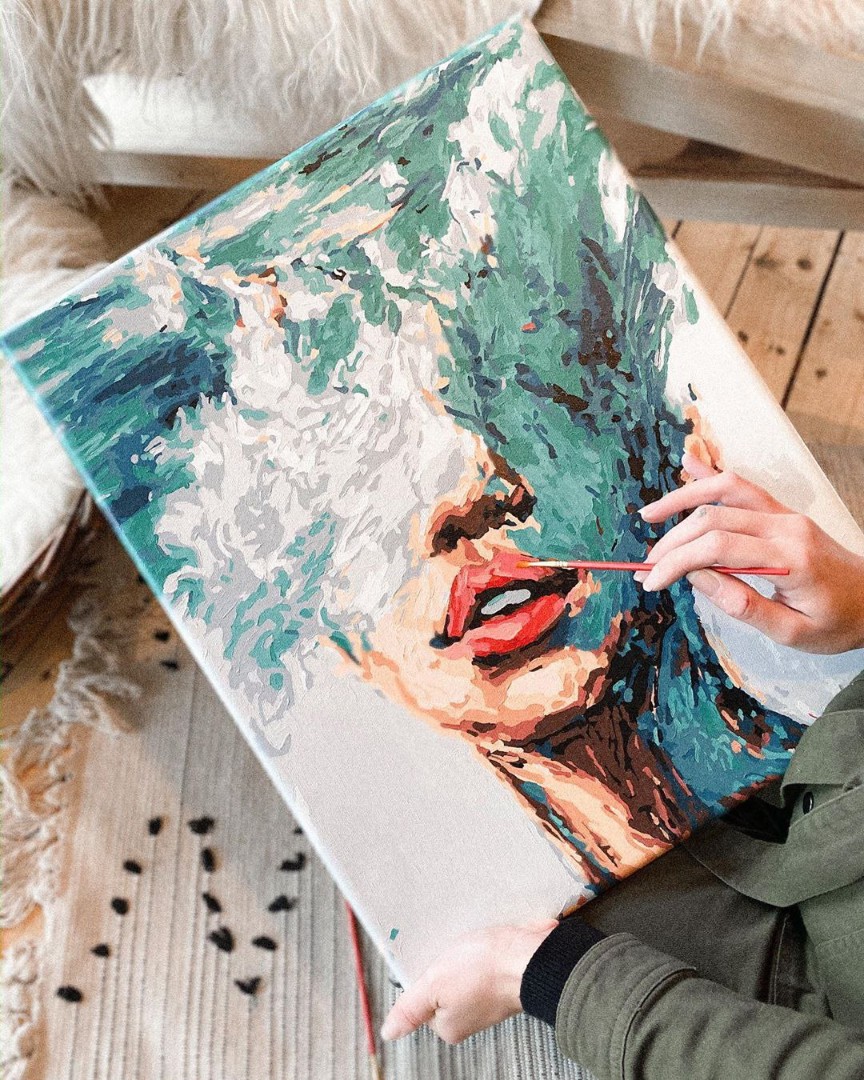 • полотно на дерев'яному підрамнику з нанесеною пронумерованою схемою майбутньої картини. Всі сегменти додатково пофарбовані в тон кольорів, якими буде зафарбовувати полотно