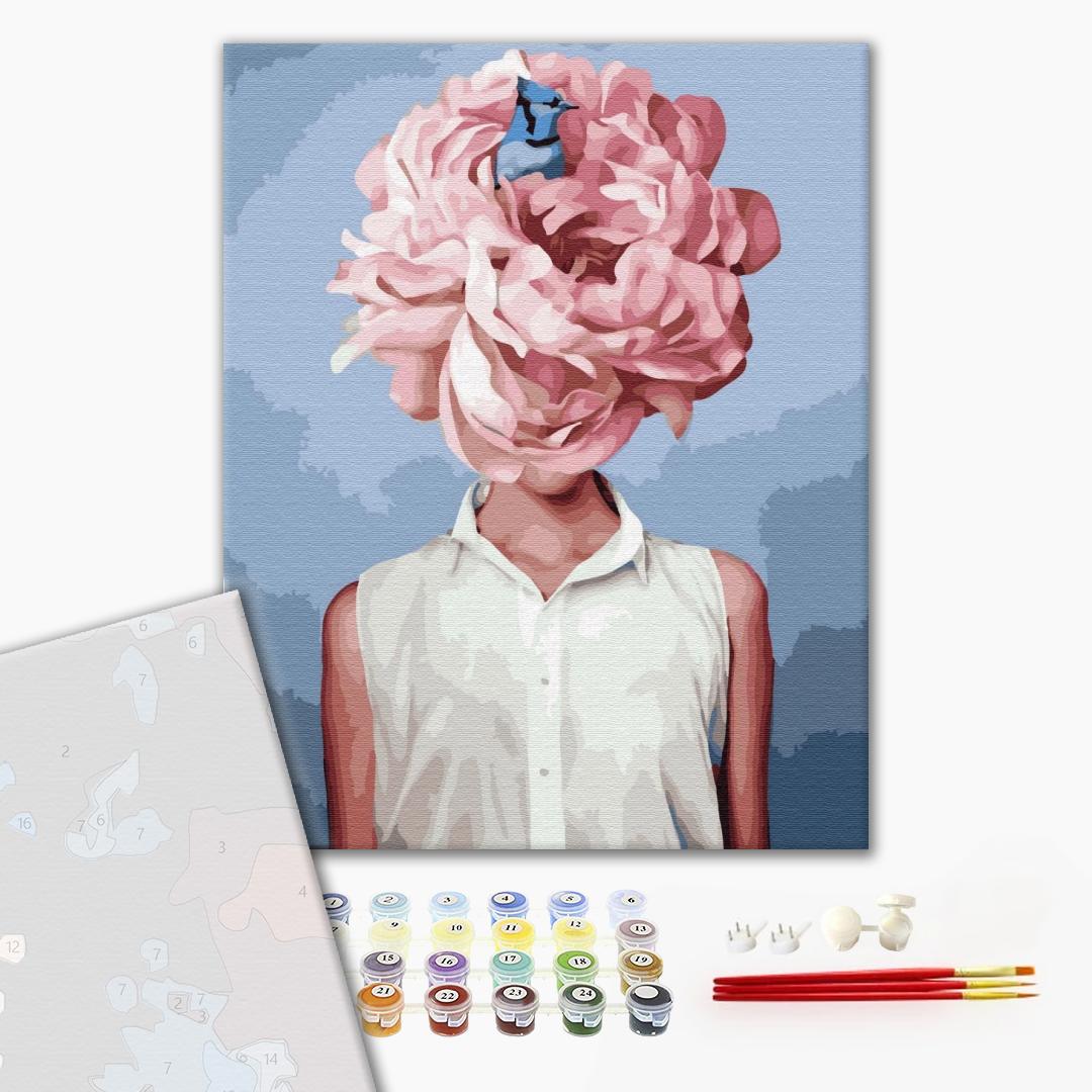 • полотно на дерев'яному підрамнику з нанесеною пронумерованою схемою майбутньої картини. Всі сегменти додатково пофарбовані в тон кольорів, якими буде зафарбовувати полотно