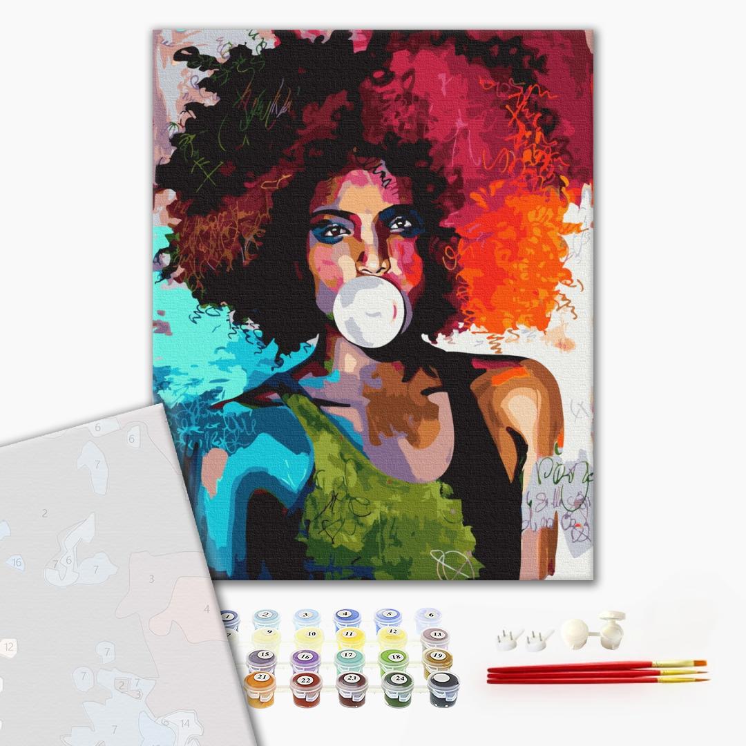 • полотно на дерев'яному підрамнику з нанесеною пронумерованою схемою майбутньої картини. Всі сегменти додатково пофарбовані в тон кольорів, якими буде зафарбовувати полотно