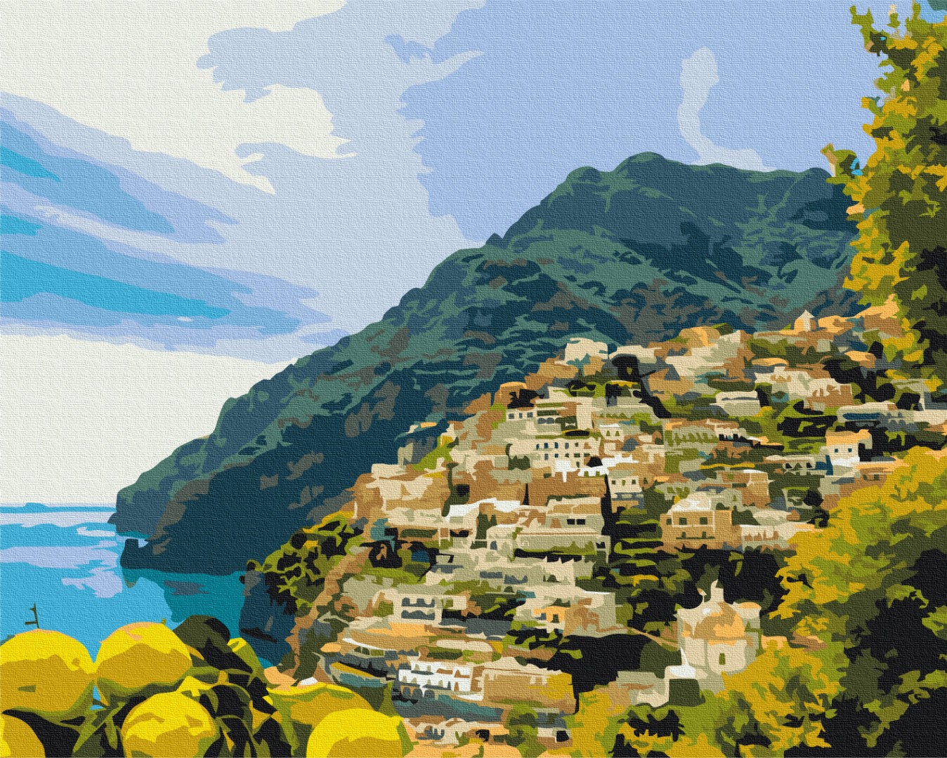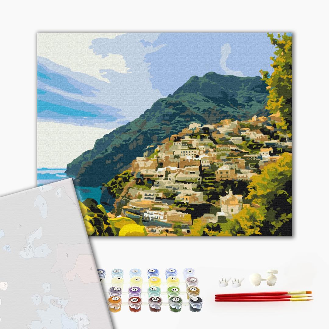 • полотно на дерев'яному підрамнику з нанесеною пронумерованою схемою майбутньої картини. Всі сегменти додатково пофарбовані в тон кольорів, якими буде зафарбовувати полотно