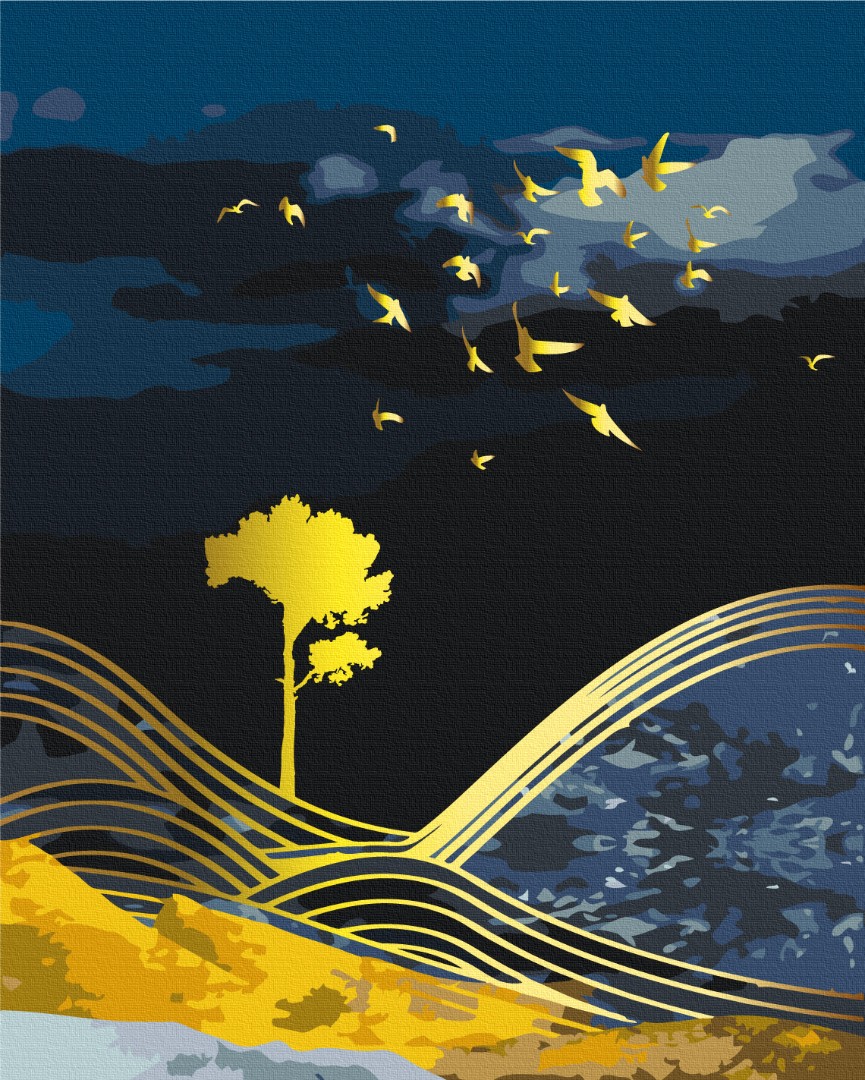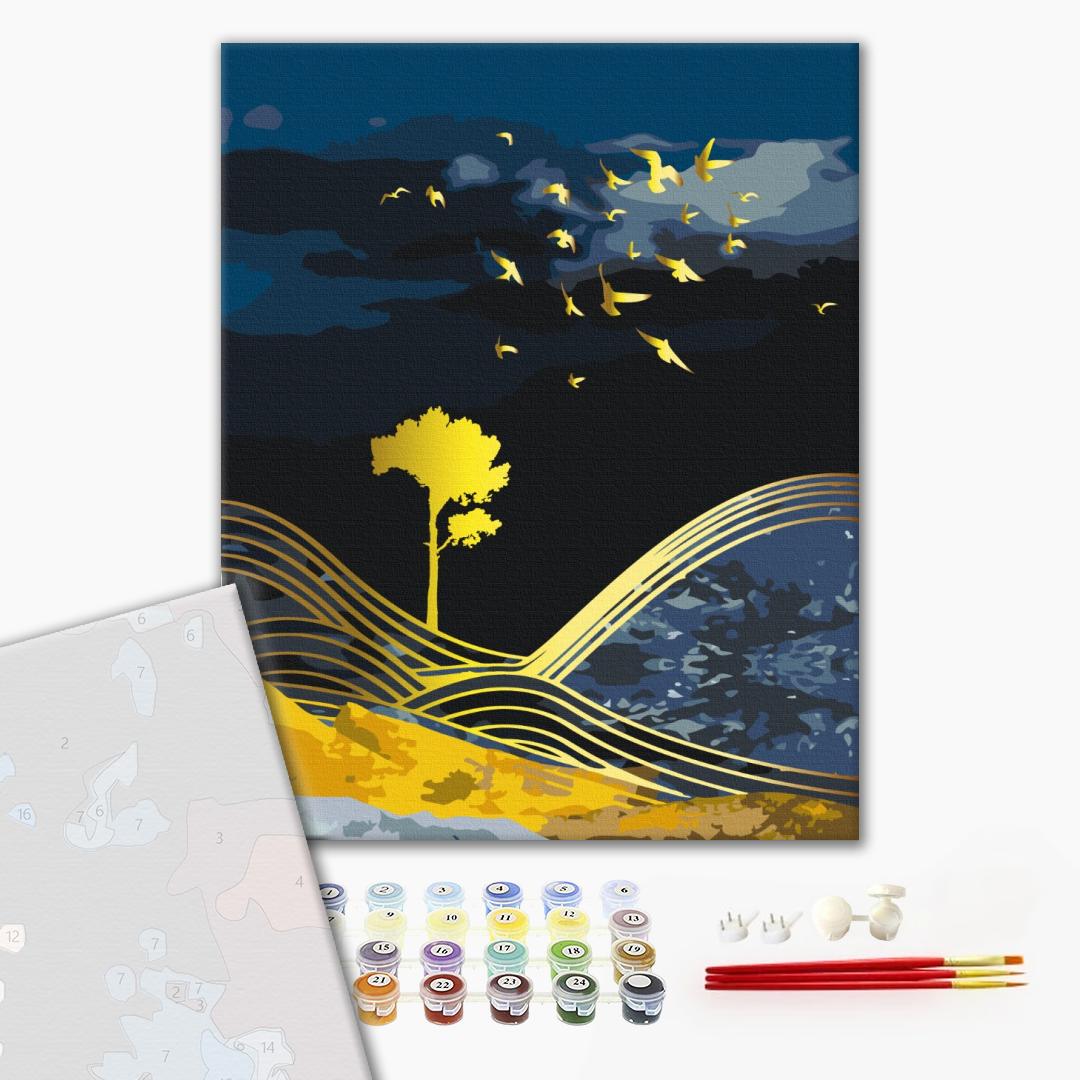 Преміум картина за номерами Природа ночі з золотою фарбою
