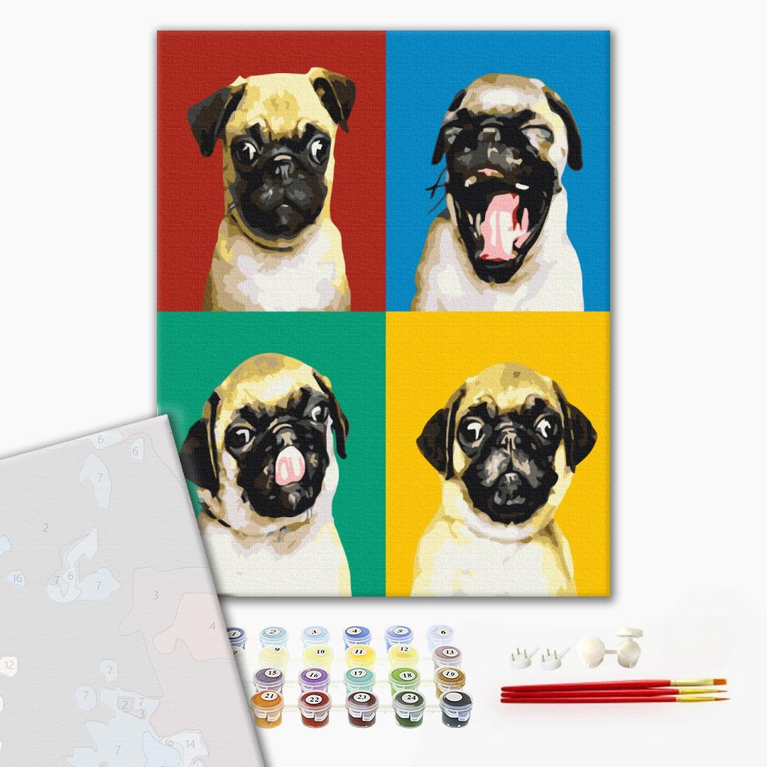 Преміум картина за номерами Колаж з мопсом PBS51321