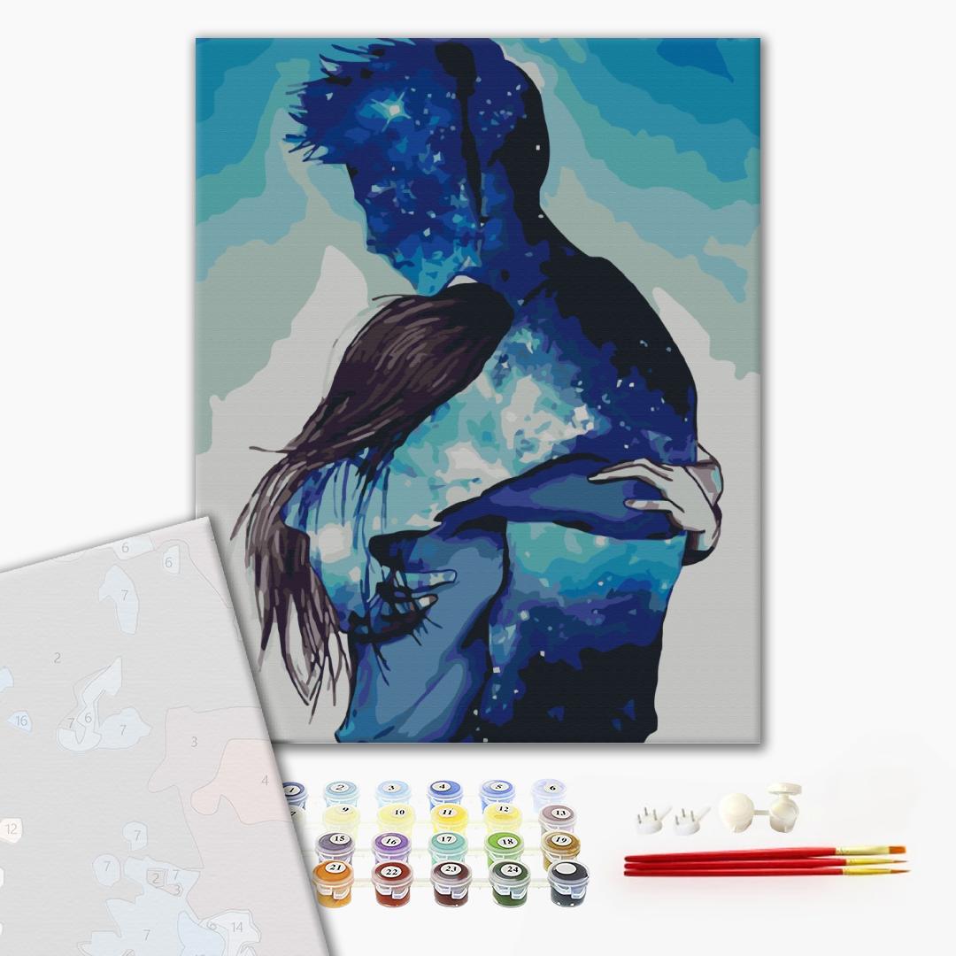 • полотно на дерев'яному підрамнику з нанесеною пронумерованою схемою майбутньої картини. Всі сегменти додатково пофарбовані в тон кольорів, якими буде зафарбовувати полотно