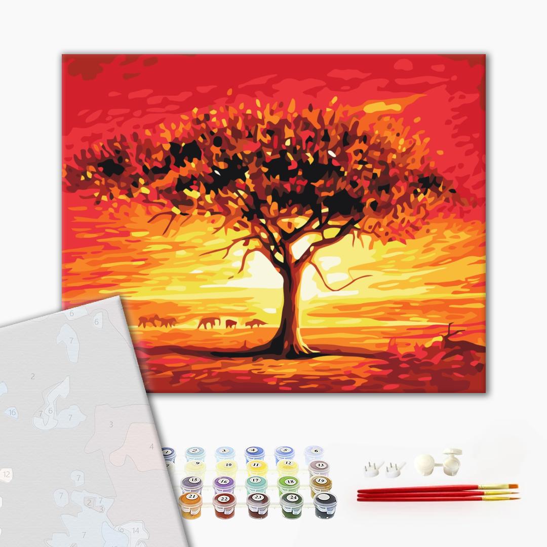 • полотно на дерев'яному підрамнику з нанесеною пронумерованою схемою майбутньої картини. Всі сегменти додатково пофарбовані в тон кольорів, якими буде зафарбовувати полотно