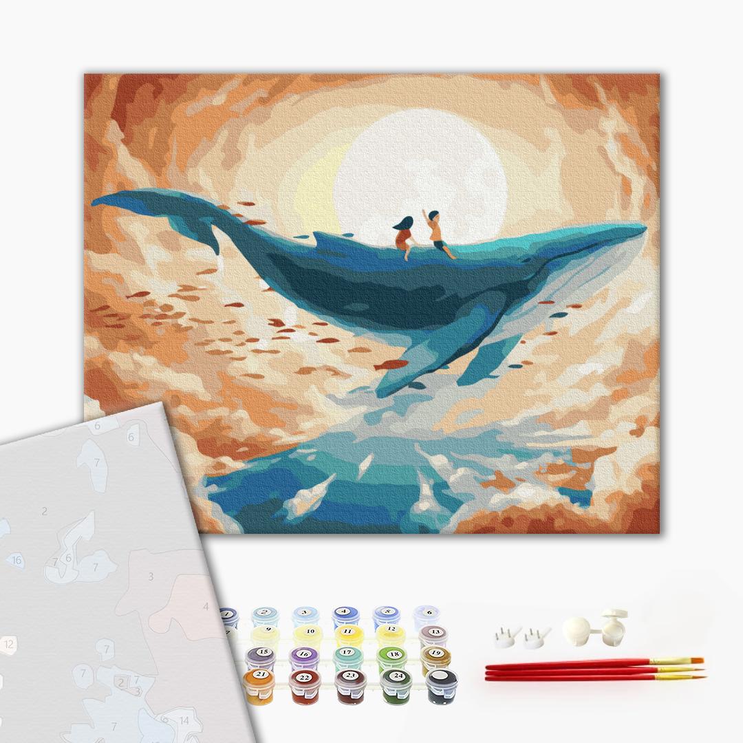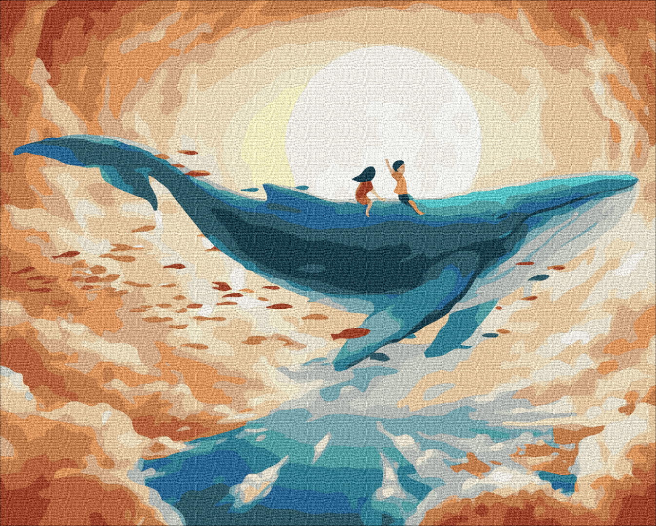 • полотно на дерев'яному підрамнику з нанесеною пронумерованою схемою майбутньої картини. Всі сегменти додатково пофарбовані в тон кольорів, якими буде зафарбовувати полотно