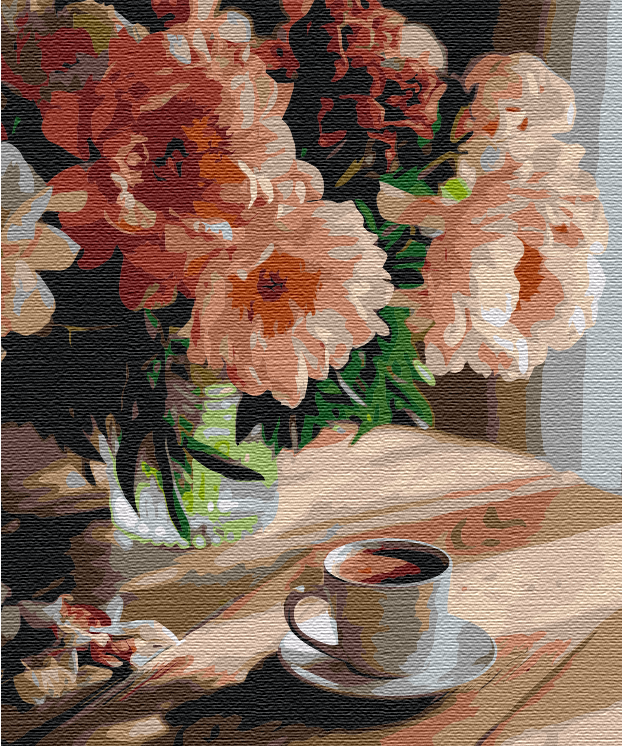 Преміум картина за номерами Кава з запахом півоній PBS51686