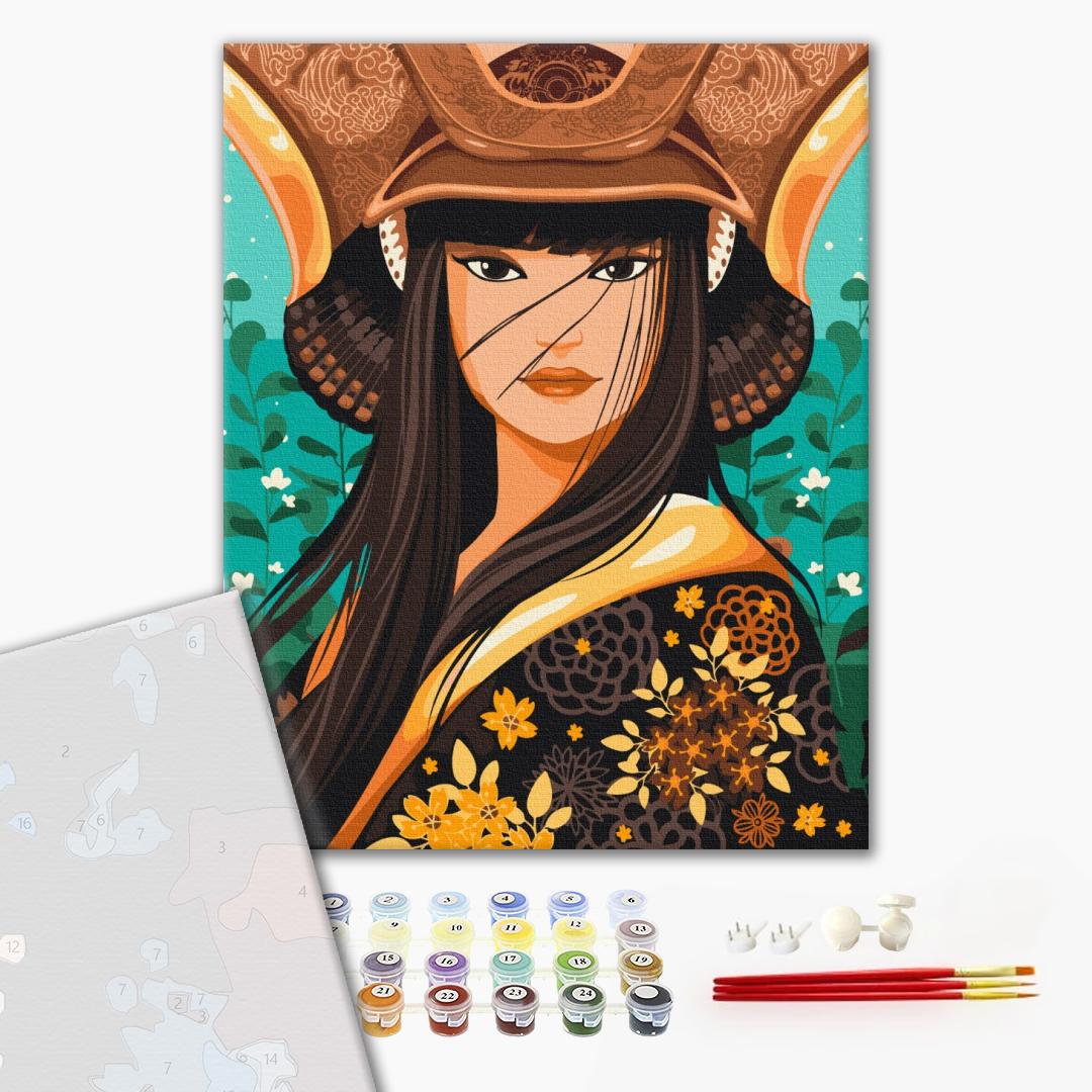 • полотно на дерев'яному підрамнику з нанесеною пронумерованою схемою майбутньої картини. Всі сегменти додатково пофарбовані в тон кольорів, якими буде зафарбовувати полотно