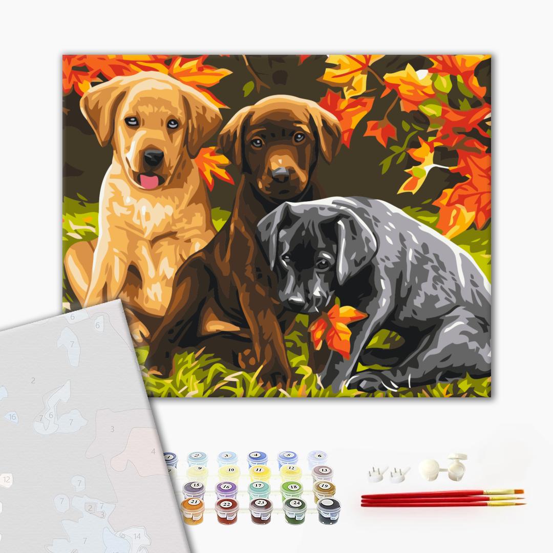 Преміум картина за номерами Три цуценя PBS6530