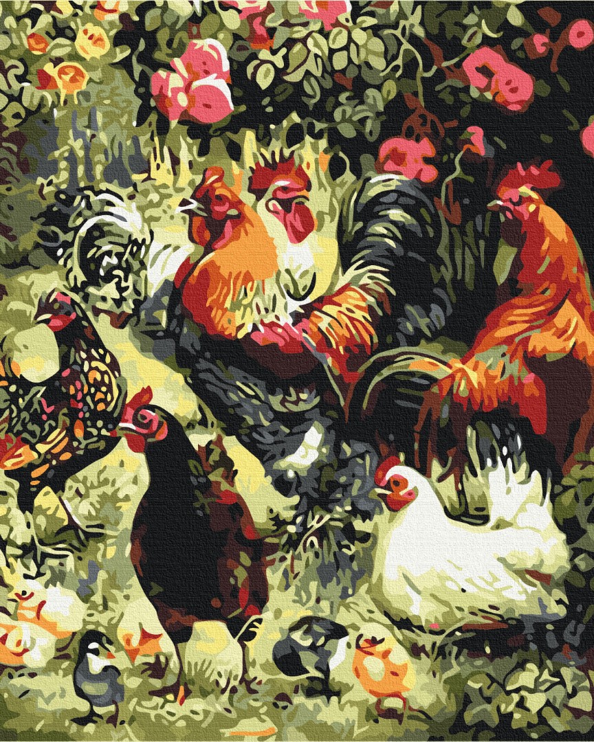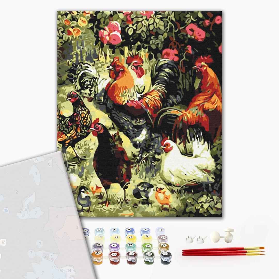 • полотно на дерев'яному підрамнику з нанесеною пронумерованою схемою майбутньої картини. Всі сегменти додатково пофарбовані в тон кольорів, якими буде зафарбовувати полотно