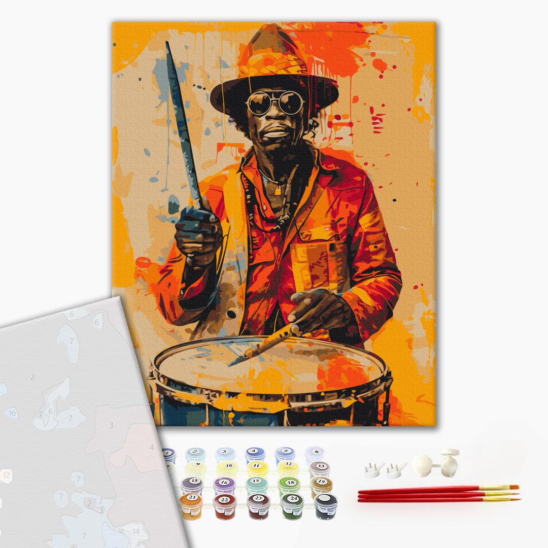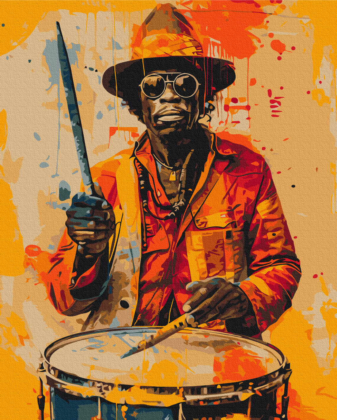 • полотно на дерев'яному підрамнику з нанесеною пронумерованою схемою майбутньої картини. Всі сегменти додатково пофарбовані в тон кольорів, якими буде зафарбовувати полотно