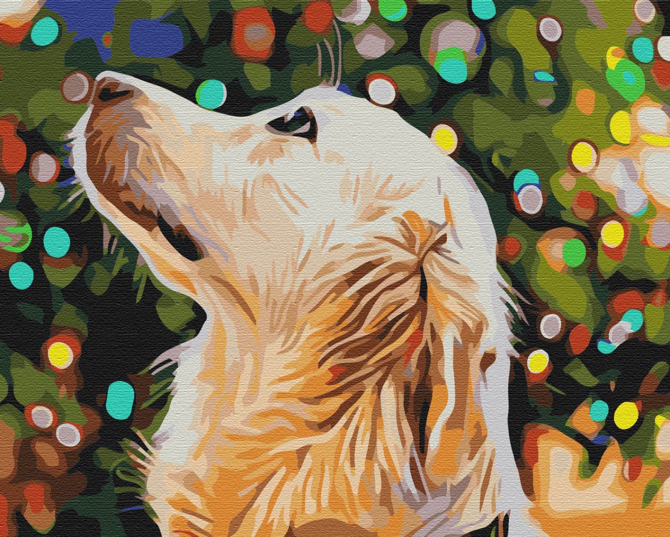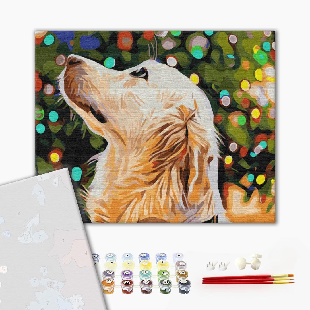 • полотно на дерев'яному підрамнику з нанесеною пронумерованою схемою майбутньої картини. Всі сегменти додатково пофарбовані в тон кольорів, якими буде зафарбовувати полотно