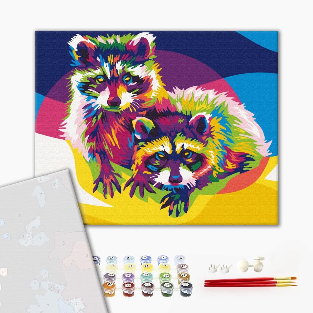 • полотно на дерев'яному підрамнику з нанесеною пронумерованою схемою майбутньої картини. Всі сегменти додатково пофарбовані в тон кольорів, якими буде зафарбовувати полотно