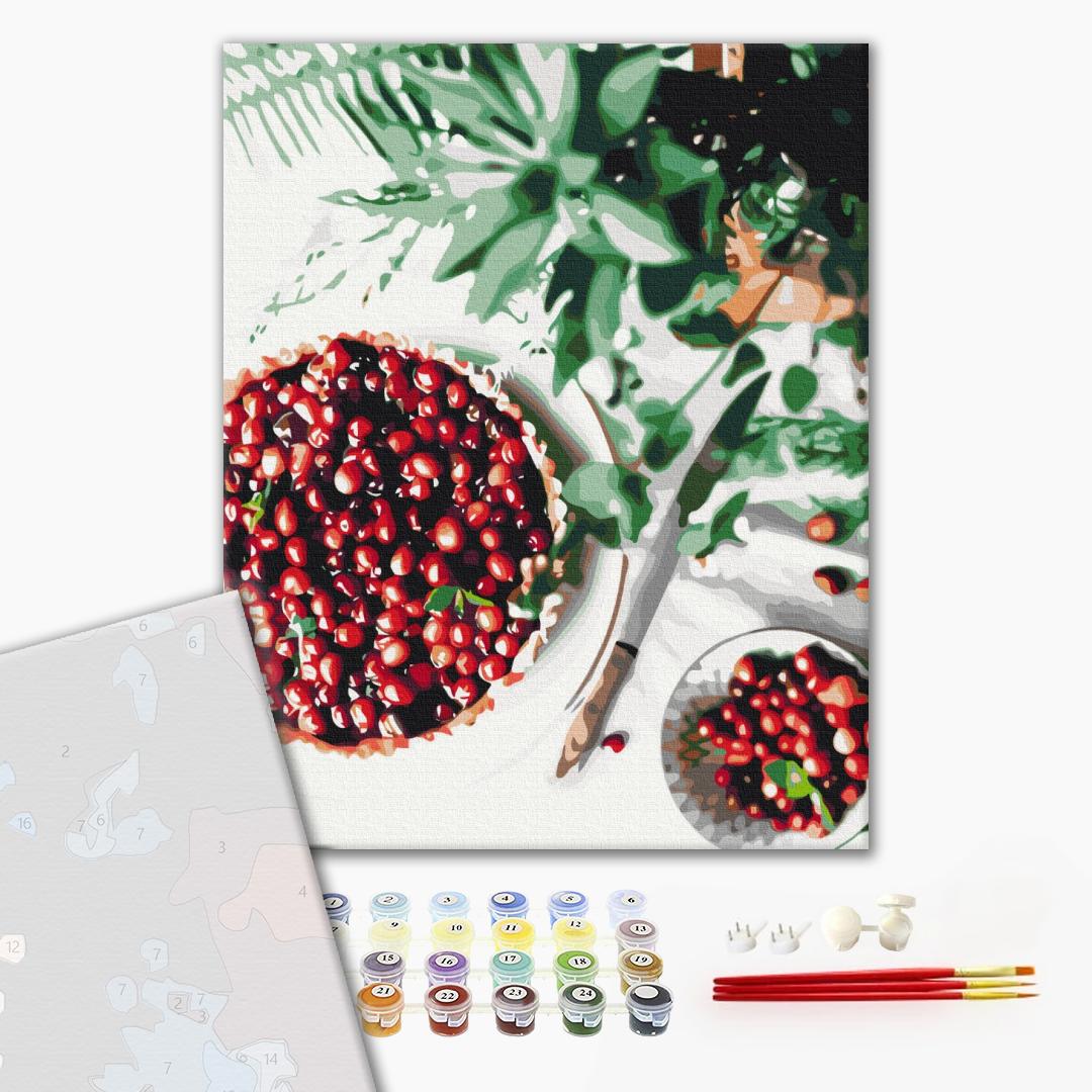 • полотно на дерев'яному підрамнику з нанесеною пронумерованою схемою майбутньої картини. Всі сегменти додатково пофарбовані в тон кольорів, якими буде зафарбовувати полотно