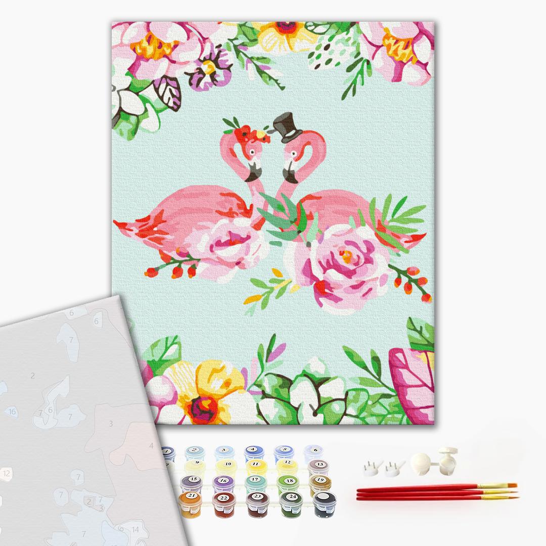 Преміум картина за номерами Фламінго в квітковому арті PBS66170