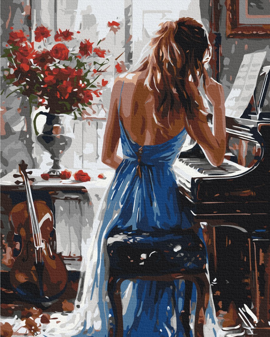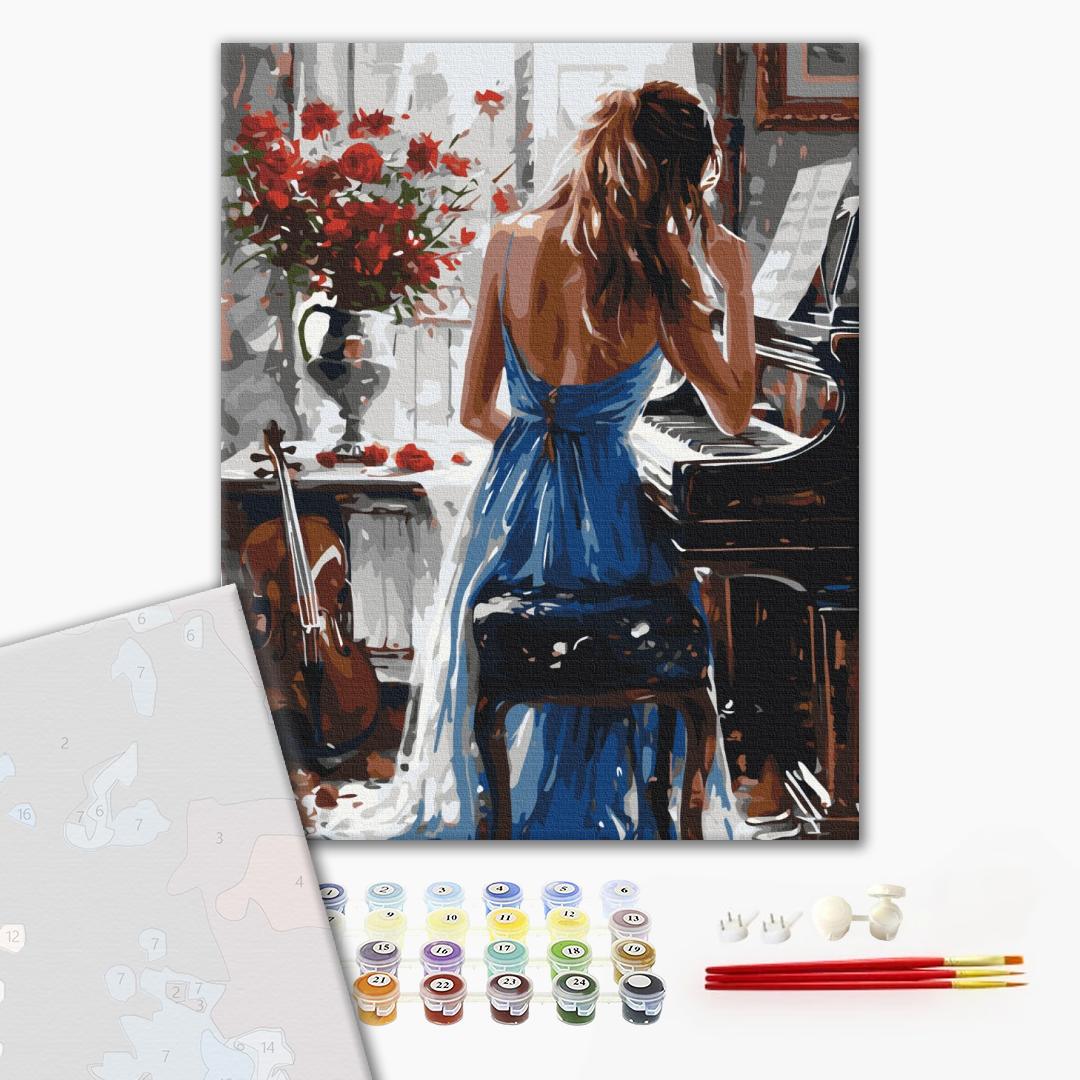 • полотно на дерев'яному підрамнику з нанесеною пронумерованою схемою майбутньої картини. Всі сегменти додатково пофарбовані в тон кольорів, якими буде зафарбовувати полотно