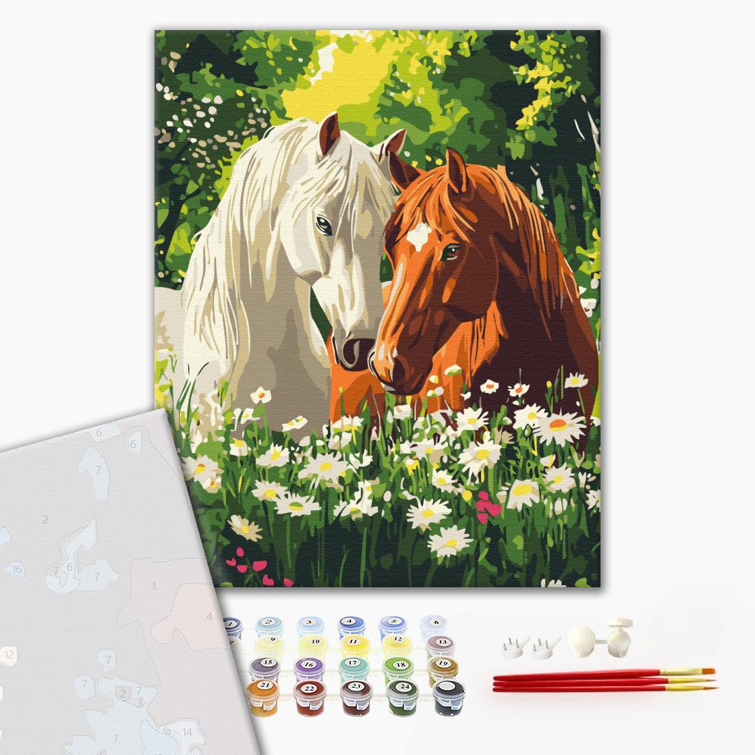 • полотно на дерев'яному підрамнику з нанесеною пронумерованою схемою майбутньої картини. Всі сегменти додатково пофарбовані в тон кольорів, якими буде зафарбовувати полотно