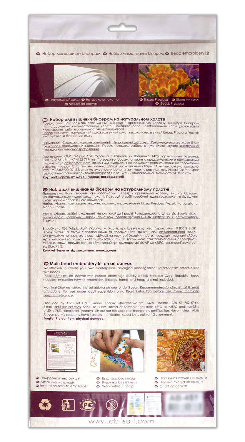 У комплекті зазвичай є натуральний холст із нанесеною схемою, чеський бісер Preciosa Ornela, бісерні голки та зрозуміла покрокова інструкція — усе, що потрібно навіть початківцю.
