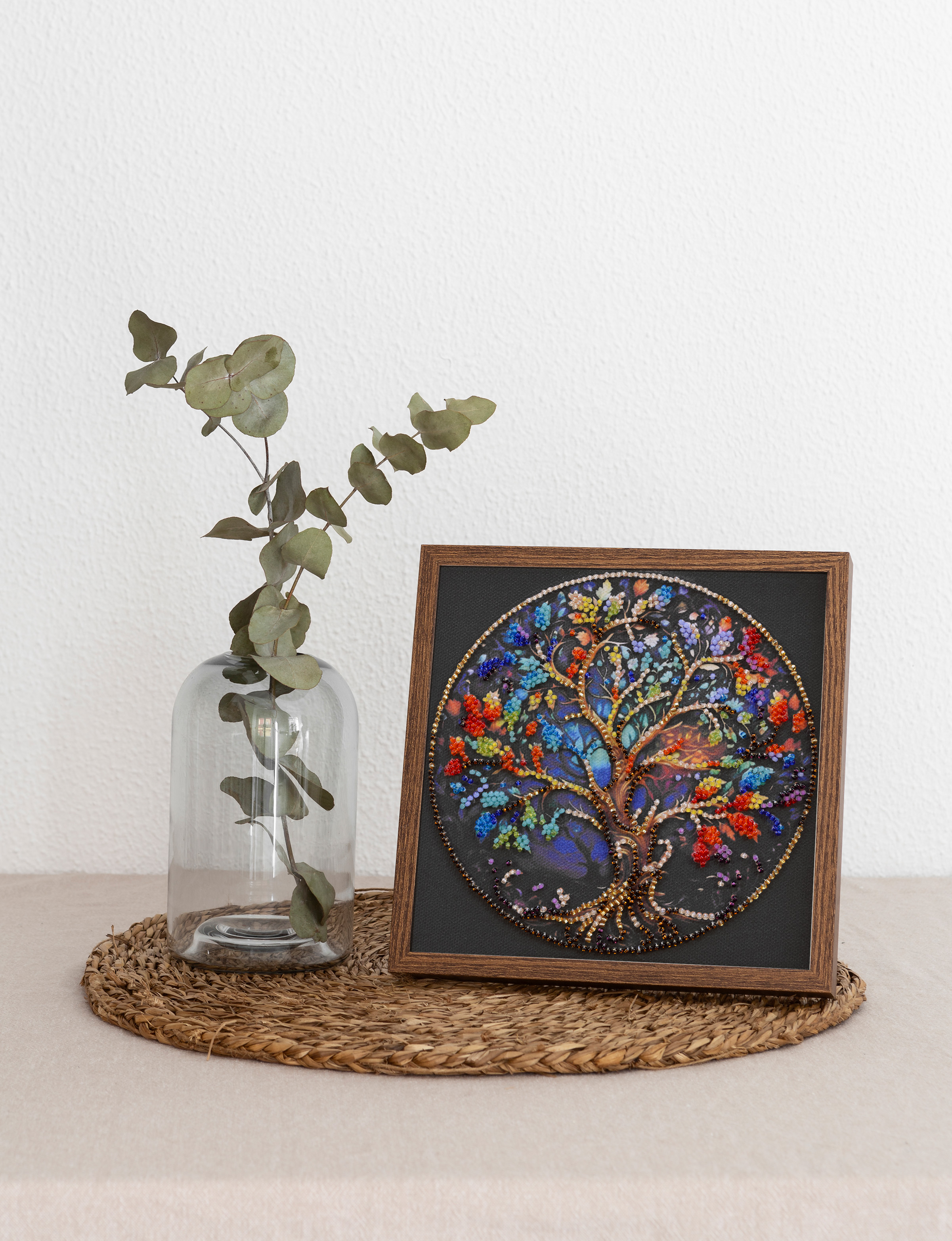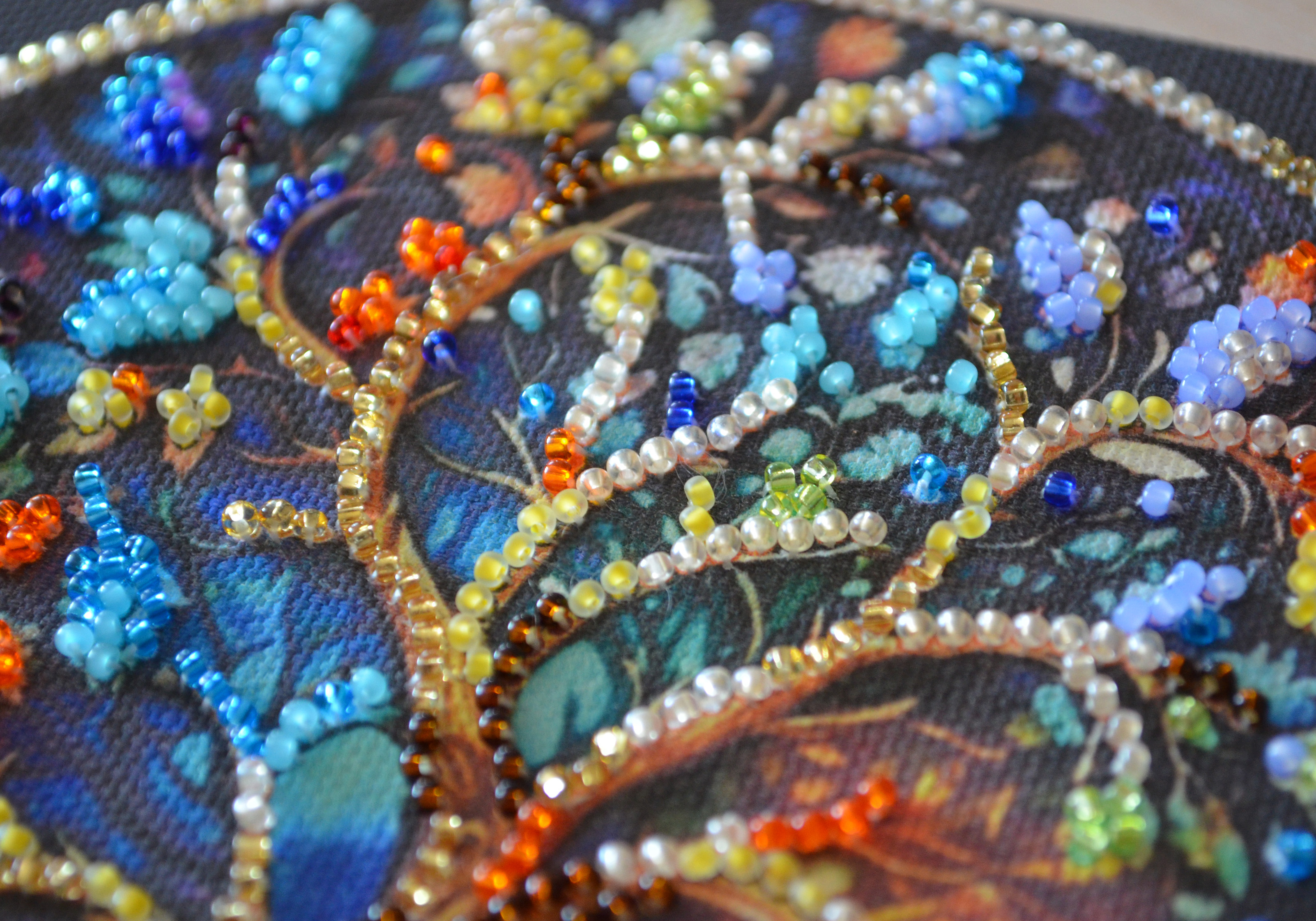 Яскраві відтінки бісеру та продумана символіка на полотні роблять процес захопливим і медитативним, а результат — естетично довершеним.