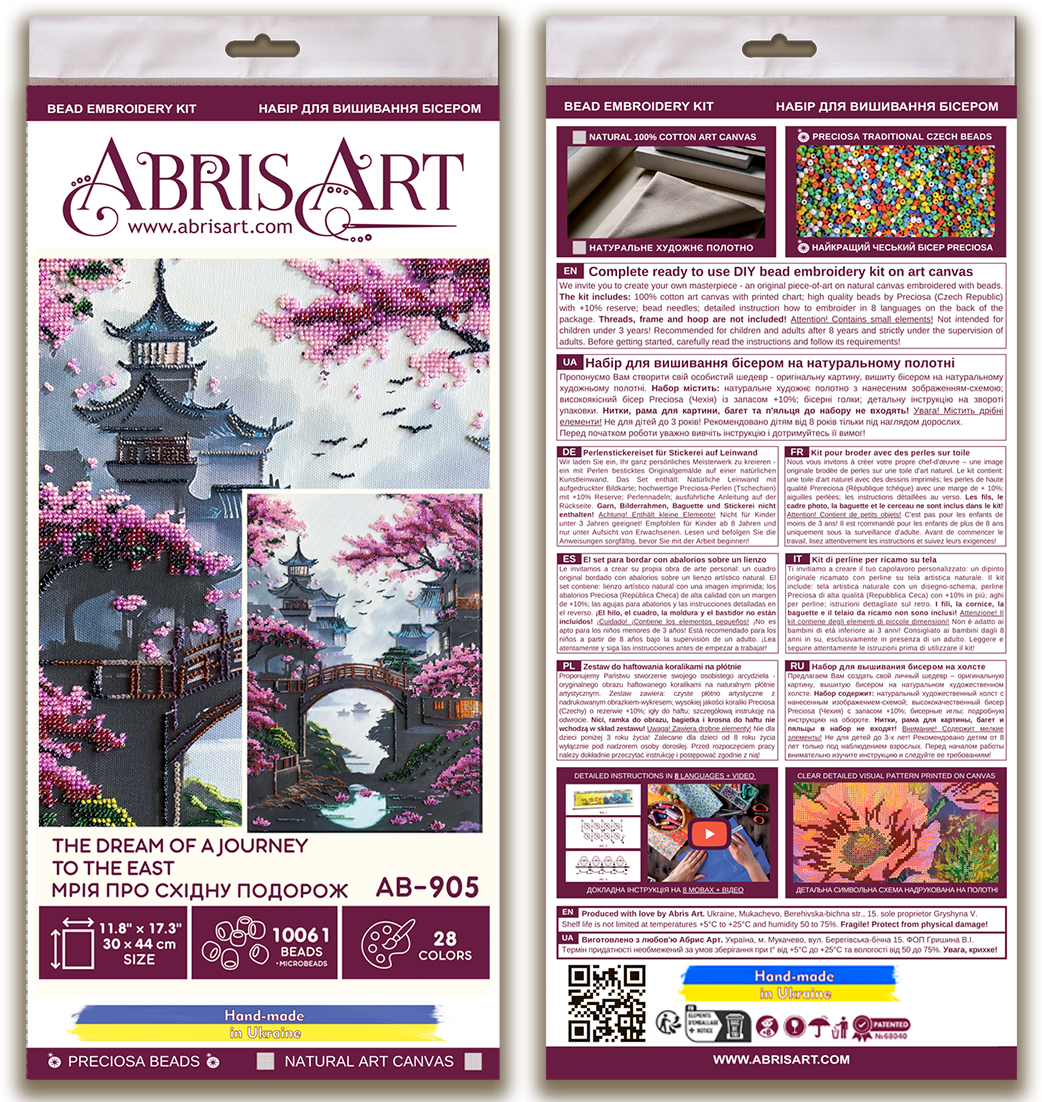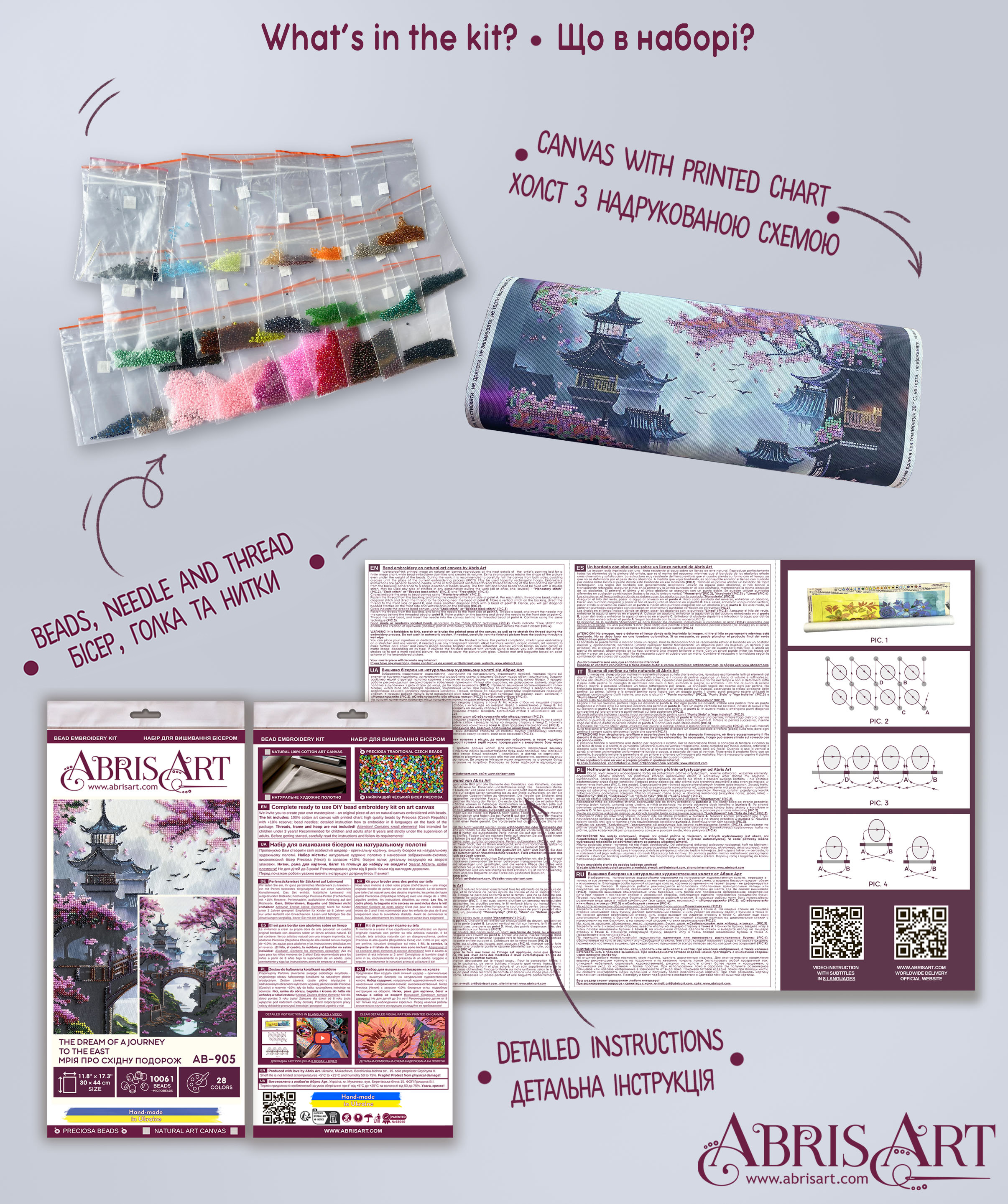 У комплекті зазвичай є натуральний холст із нанесеною схемою, чеський бісер Preciosa Ornela, бісерні голки та зрозуміла покрокова інструкція — усе, що потрібно навіть початківцю.