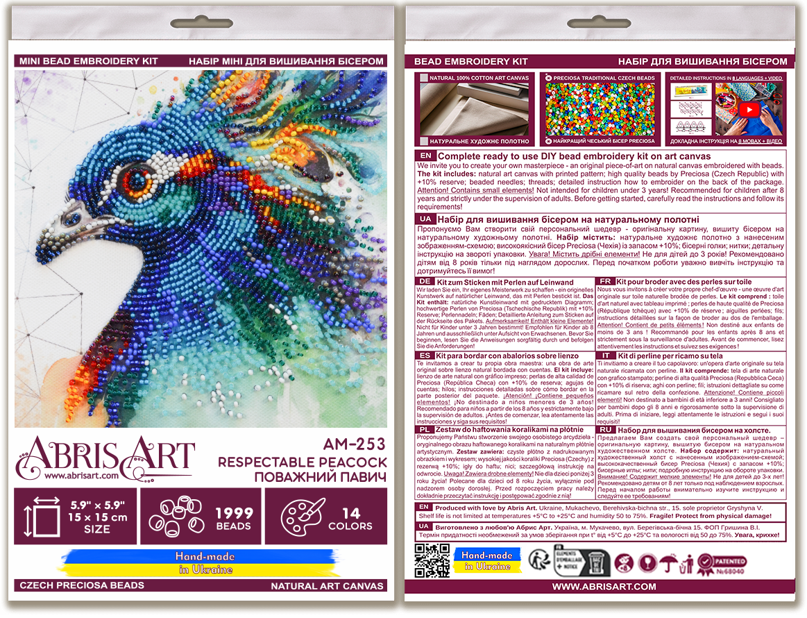 У комплекті зазвичай є натуральний холст із нанесеною схемою, чеський бісер Preciosa Ornela, бісерні голки та зрозуміла покрокова інструкція — усе, що потрібно навіть початківцю.